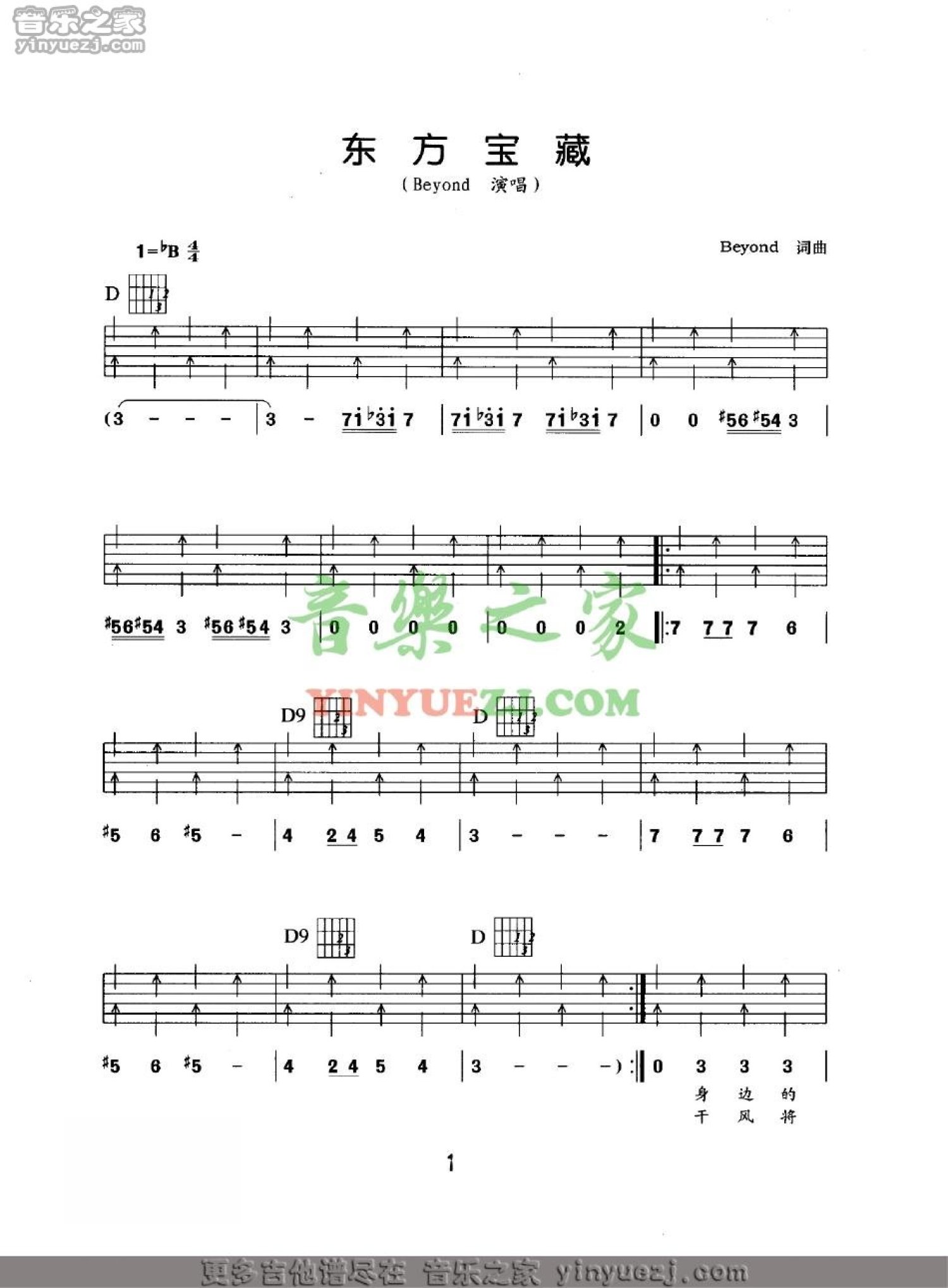 曲谱介绍: Beyond《东方宝藏》吉他谱