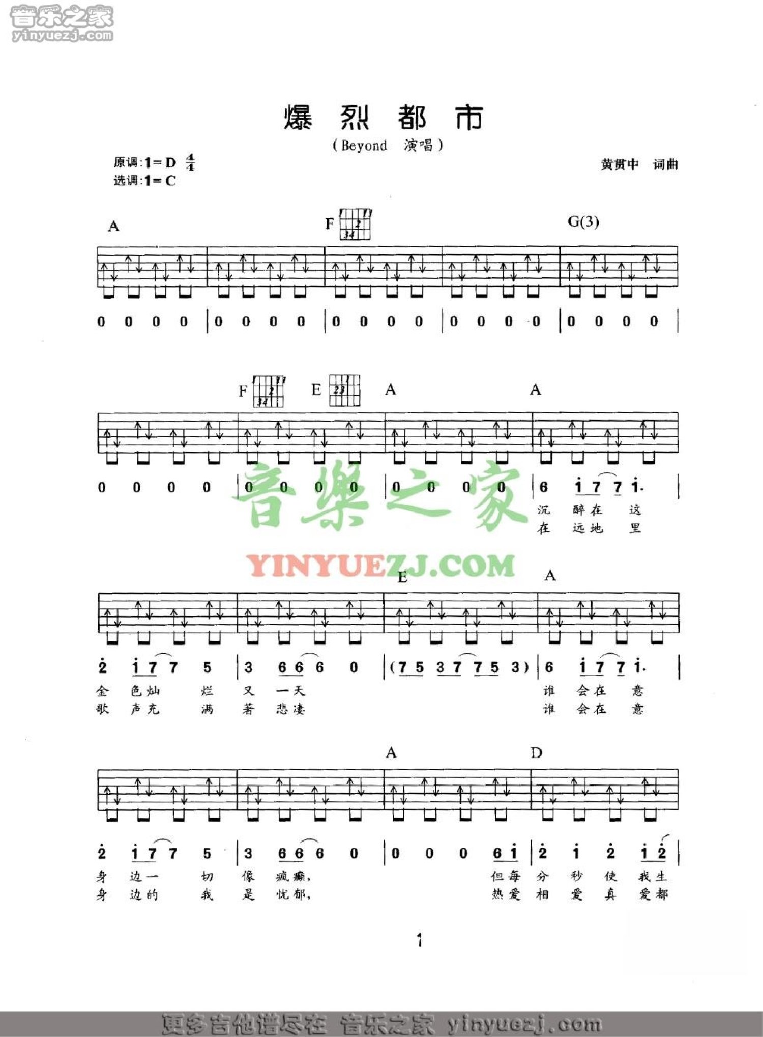 曲谱介绍: Beyond《爆裂都市》吉他谱