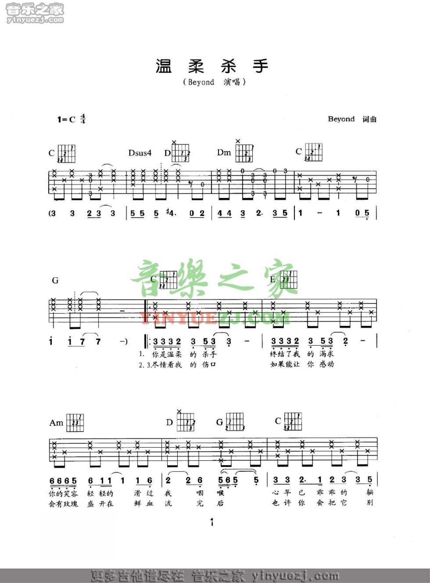 曲谱介绍: Beyond《温柔杀手》吉他谱