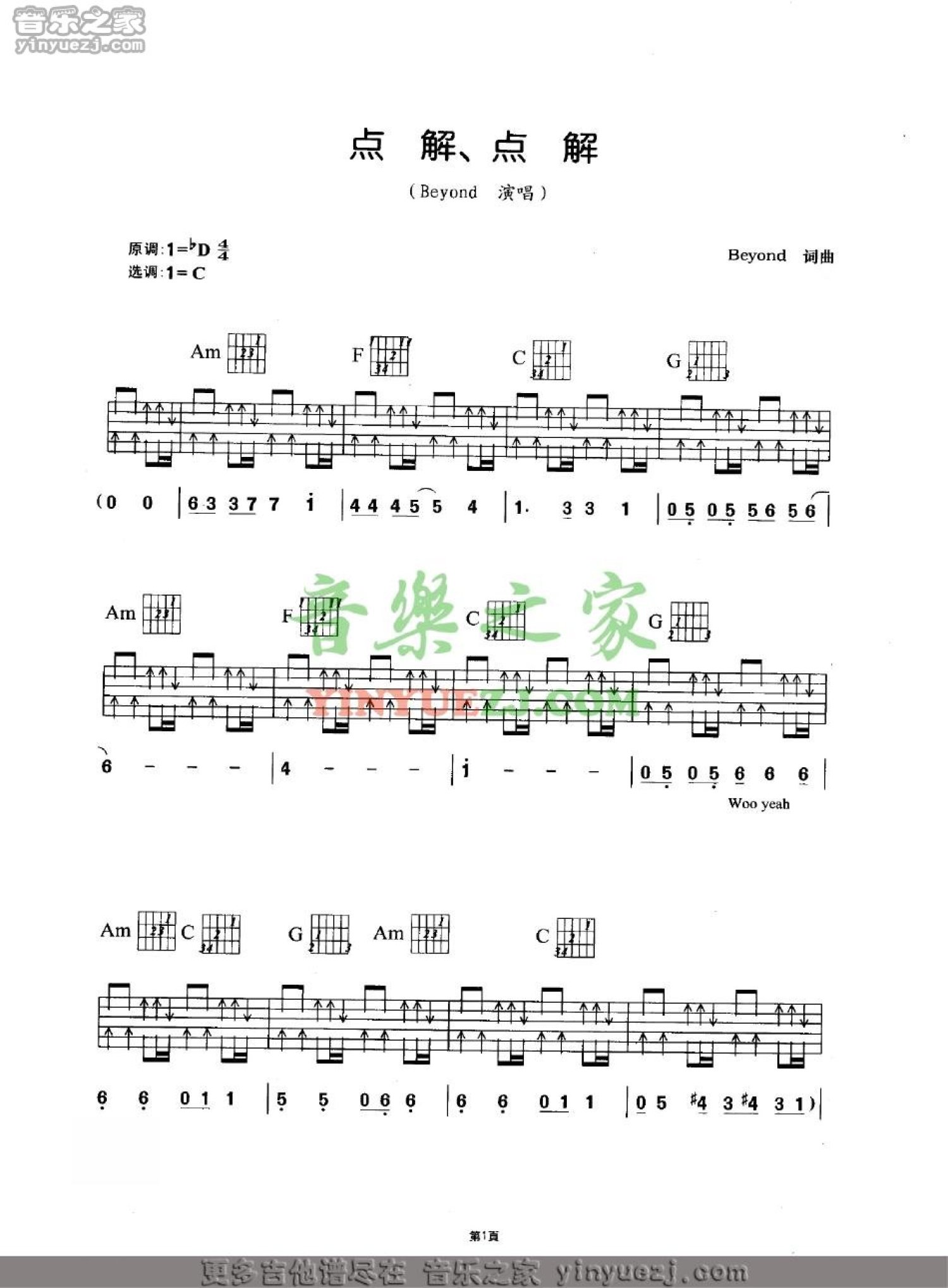点解点解吉他谱 - Beyond - C调吉他弹唱谱