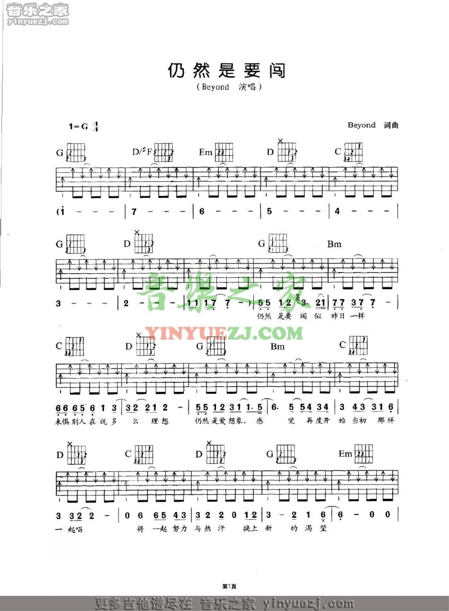 曲谱介绍: Beyond《仍然是要闯》吉他谱