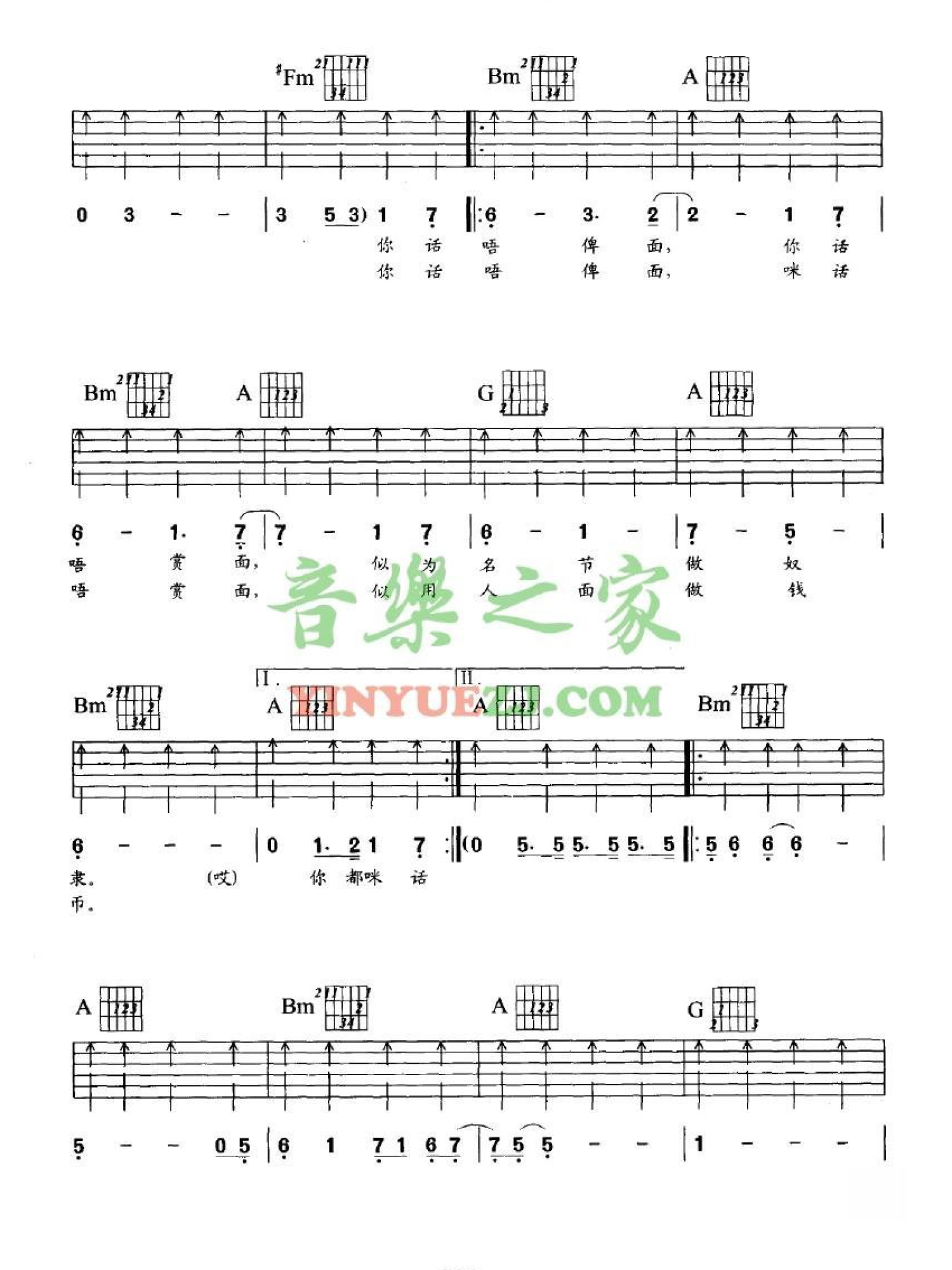 曲谱介绍: Beyond《俾面派对》吉他谱