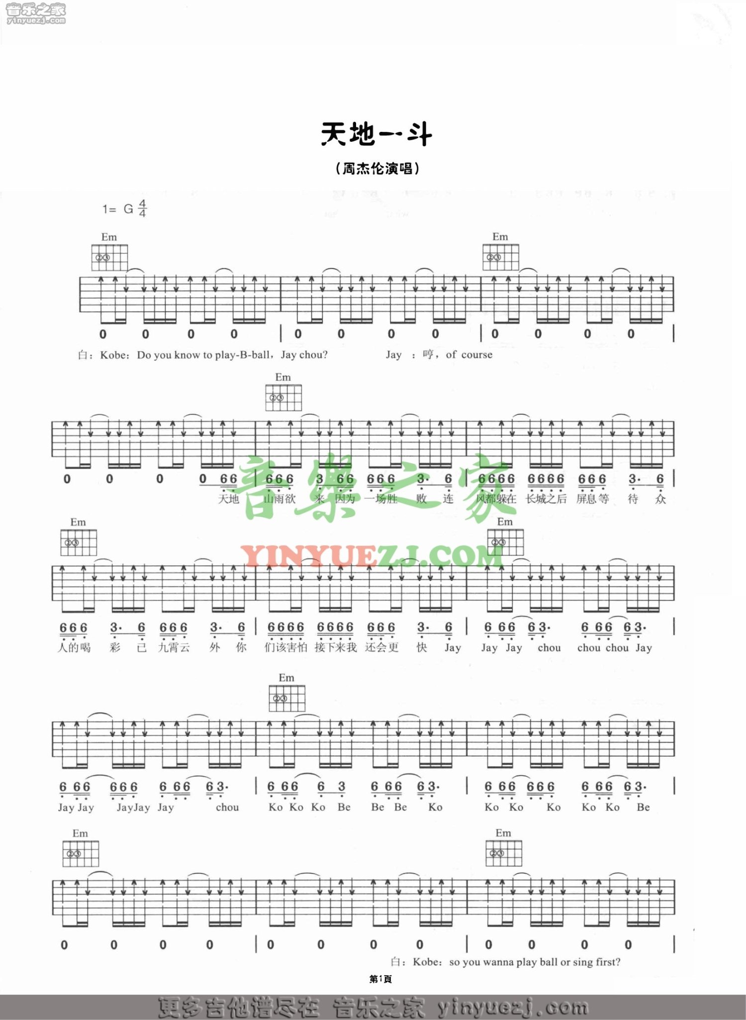 曲谱介绍: 周杰伦《天地一斗》吉他谱