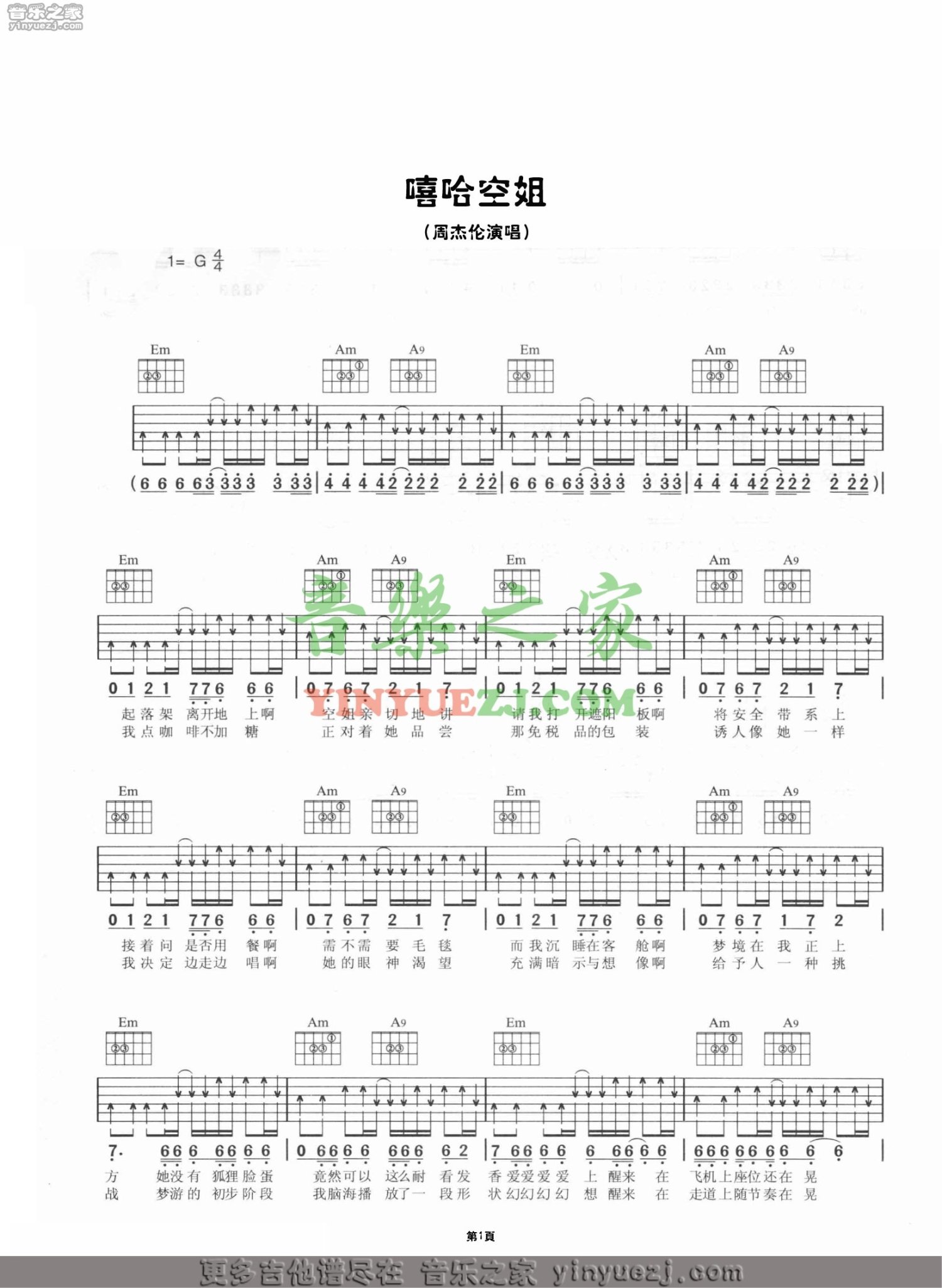 曲谱介绍: 周杰伦《嘻哈空姐》吉他谱