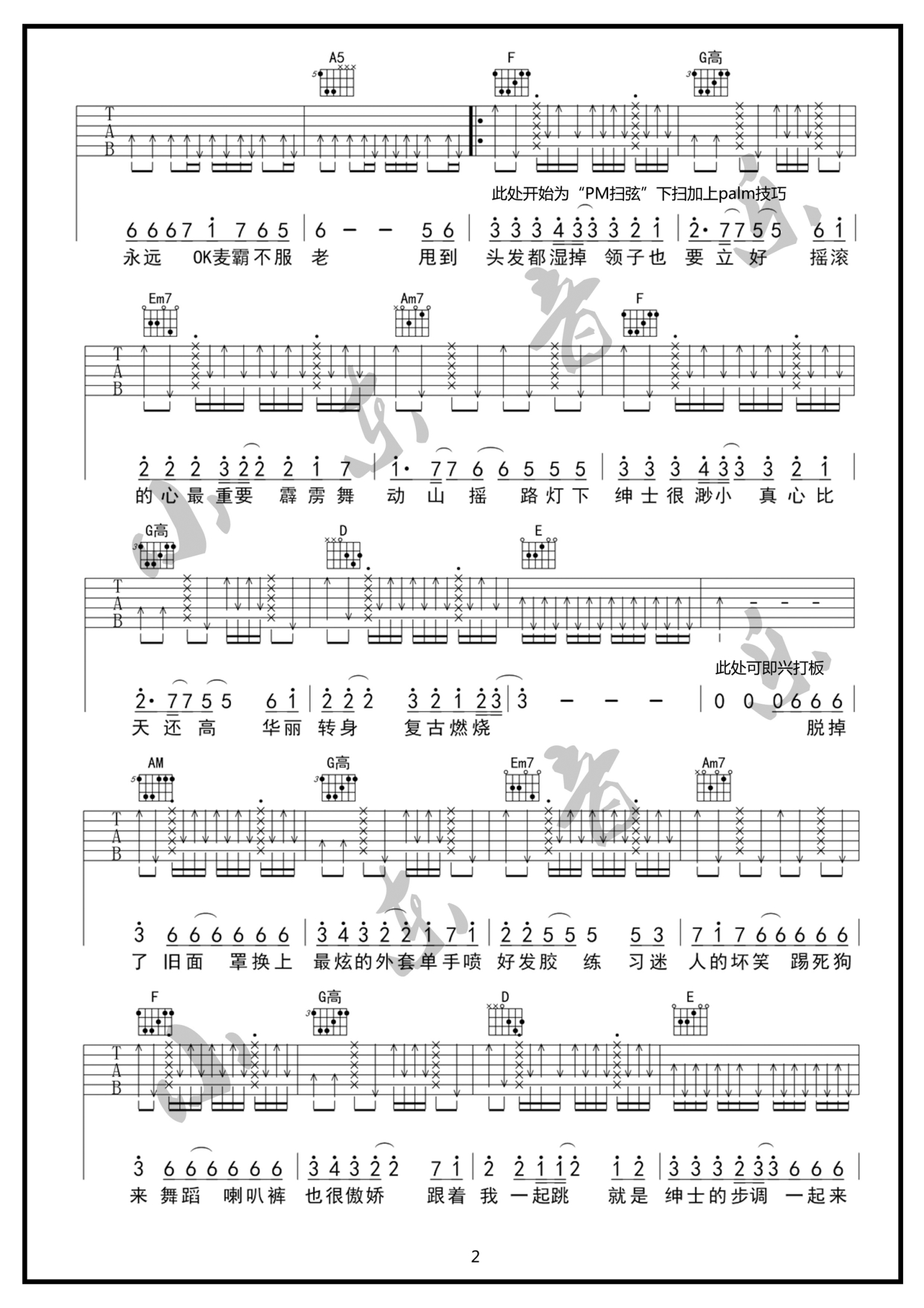 曲谱介绍: 摇摆绅士吉他谱黑龙