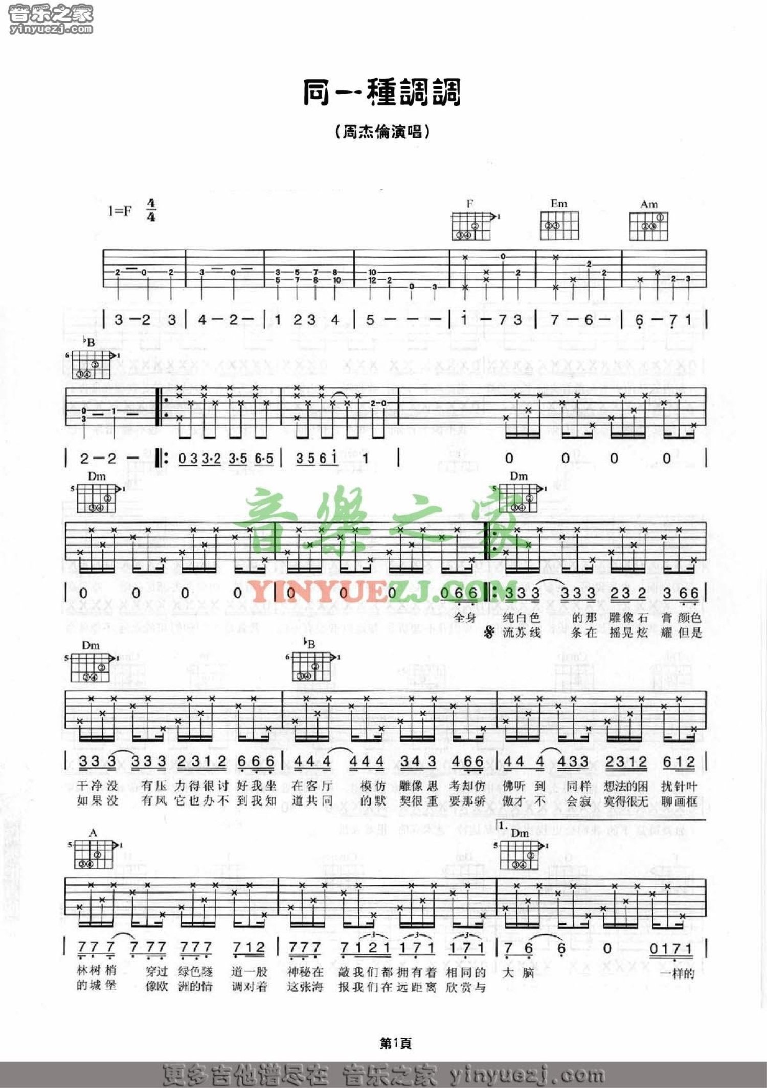 同一种调调吉他谱 - 周杰伦 - F调吉他弹唱谱