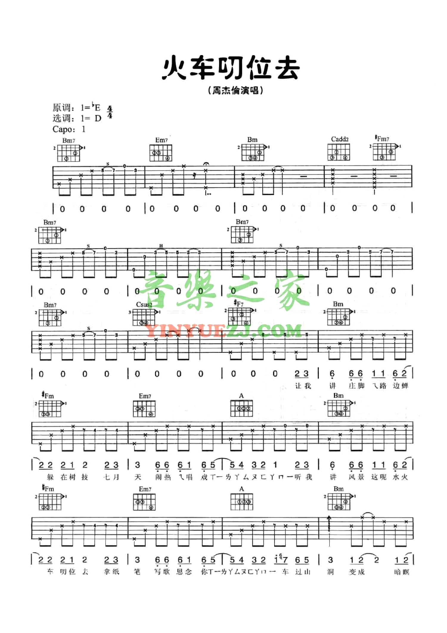 曲谱介绍: 周杰伦《火车叨位去》吉他谱