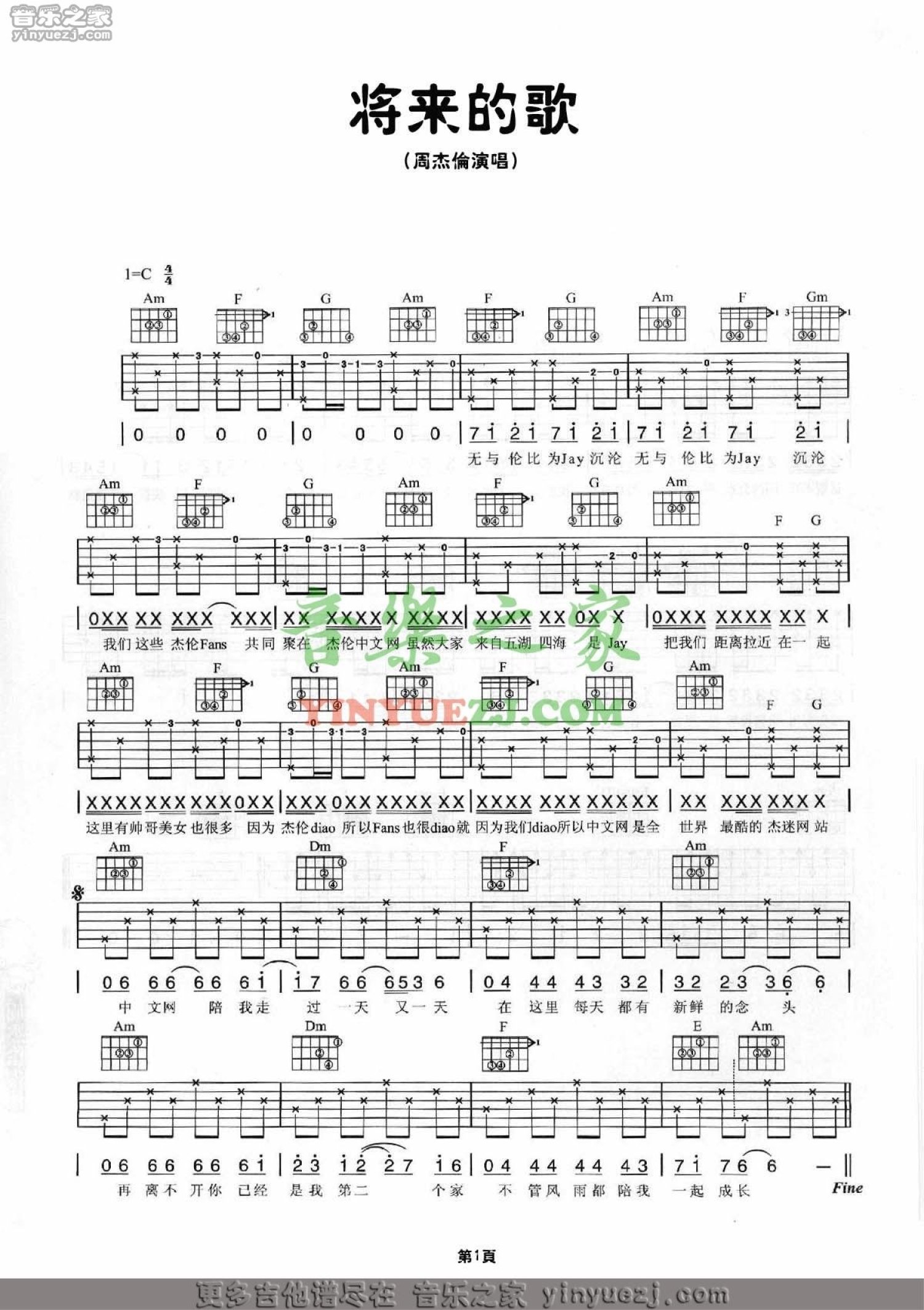 曲谱介绍: 周杰伦《将来的歌》吉他谱