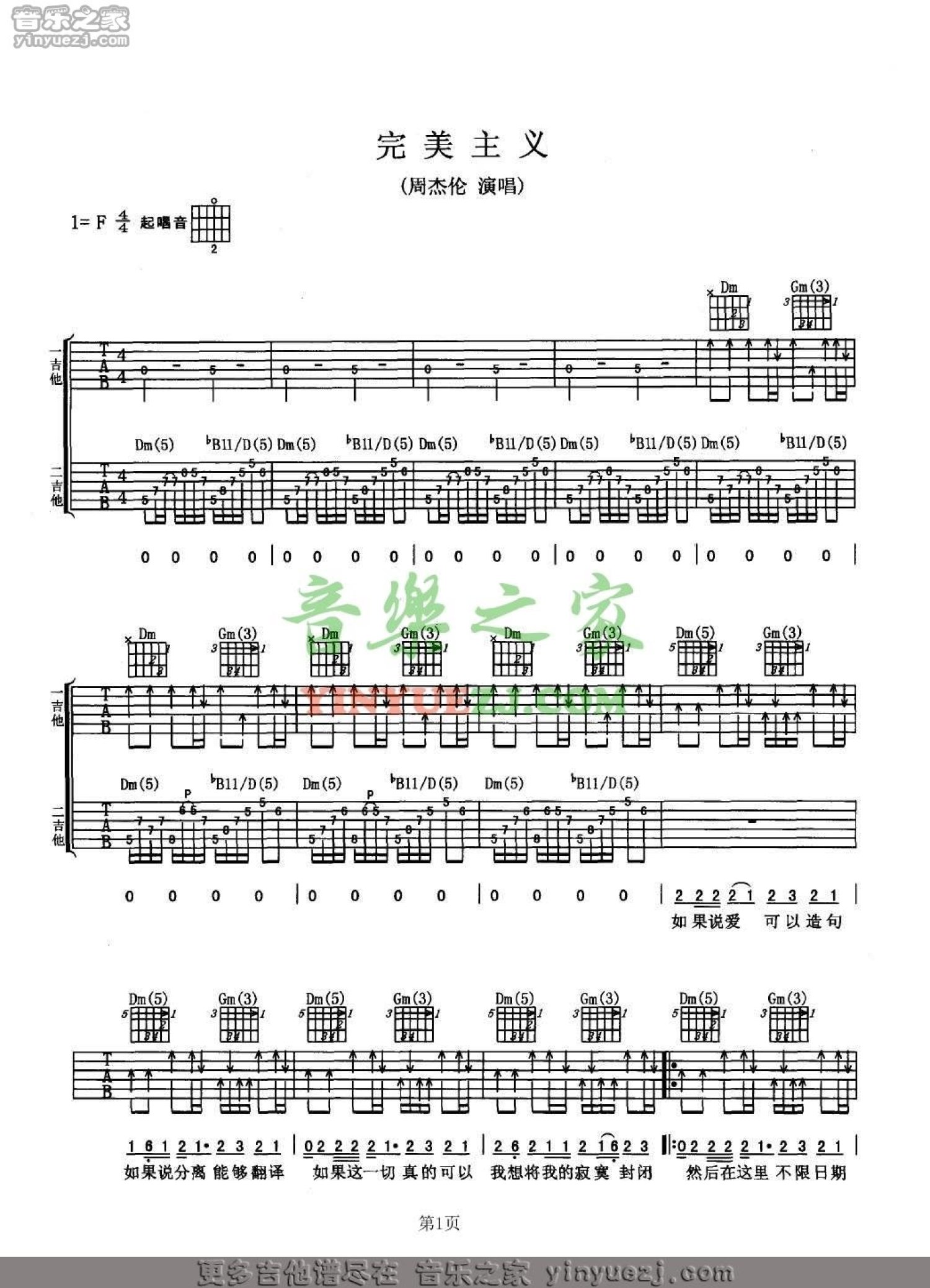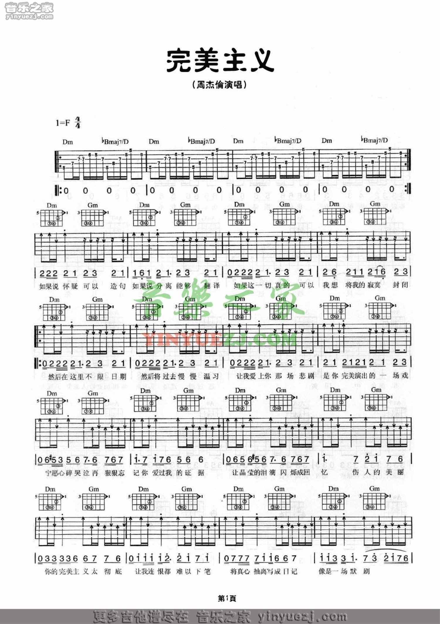 完美主义吉他谱 - 周杰伦 - F调吉他弹唱谱