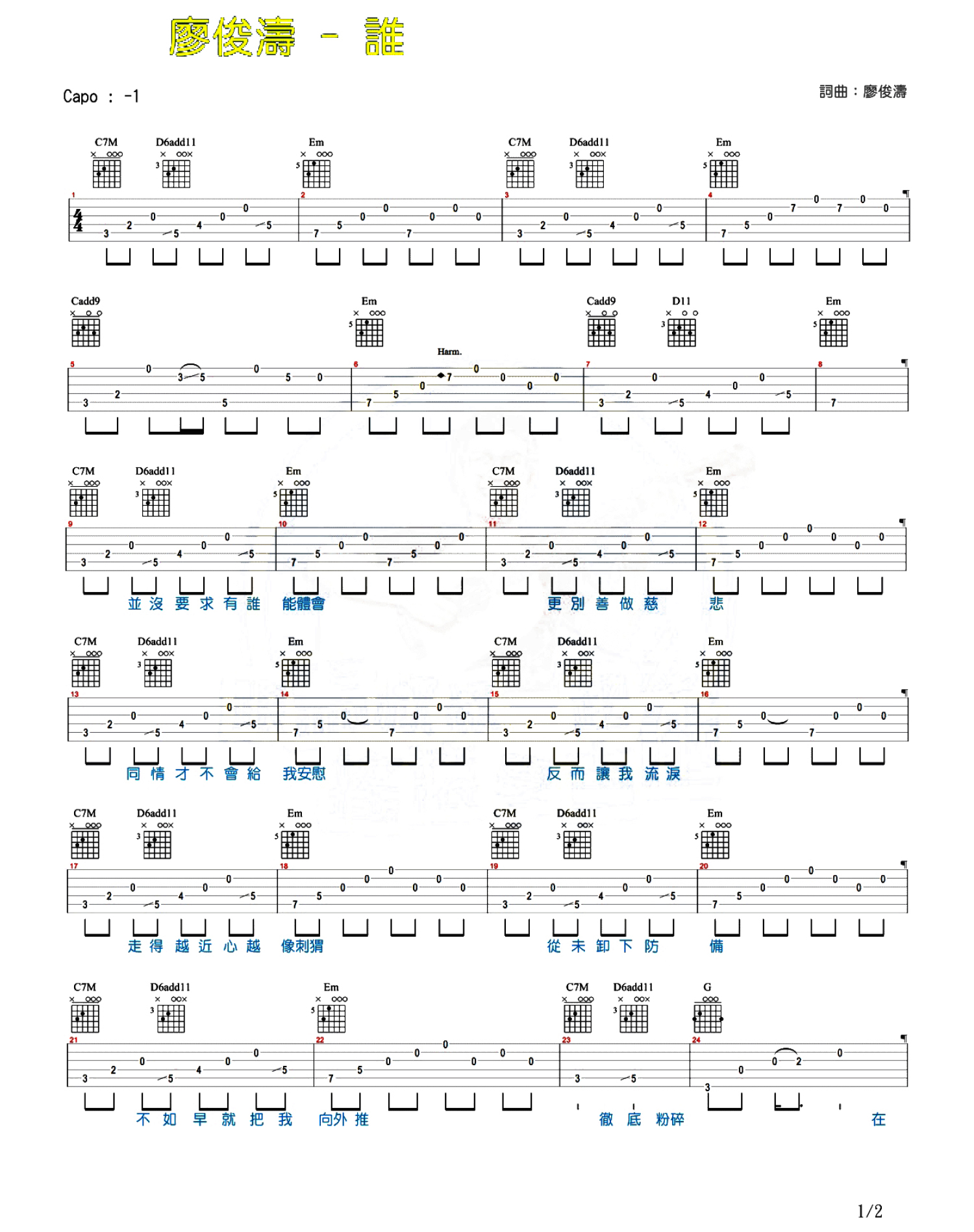 谁吉他谱 - 吉他谱 - 吉他弹唱谱