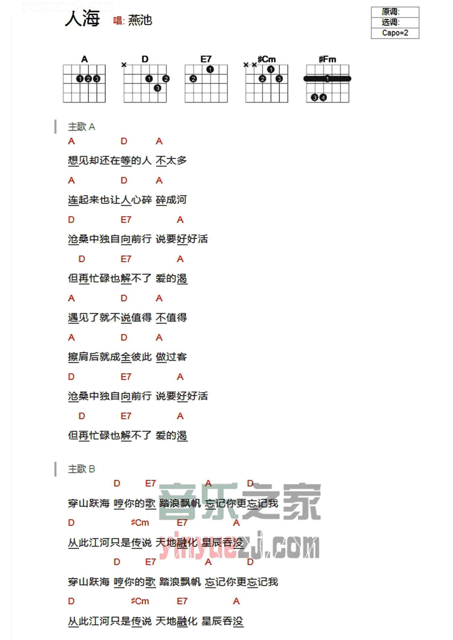 人海吉他谱 - 燕池 - 吉他弹唱谱 - 和弦谱