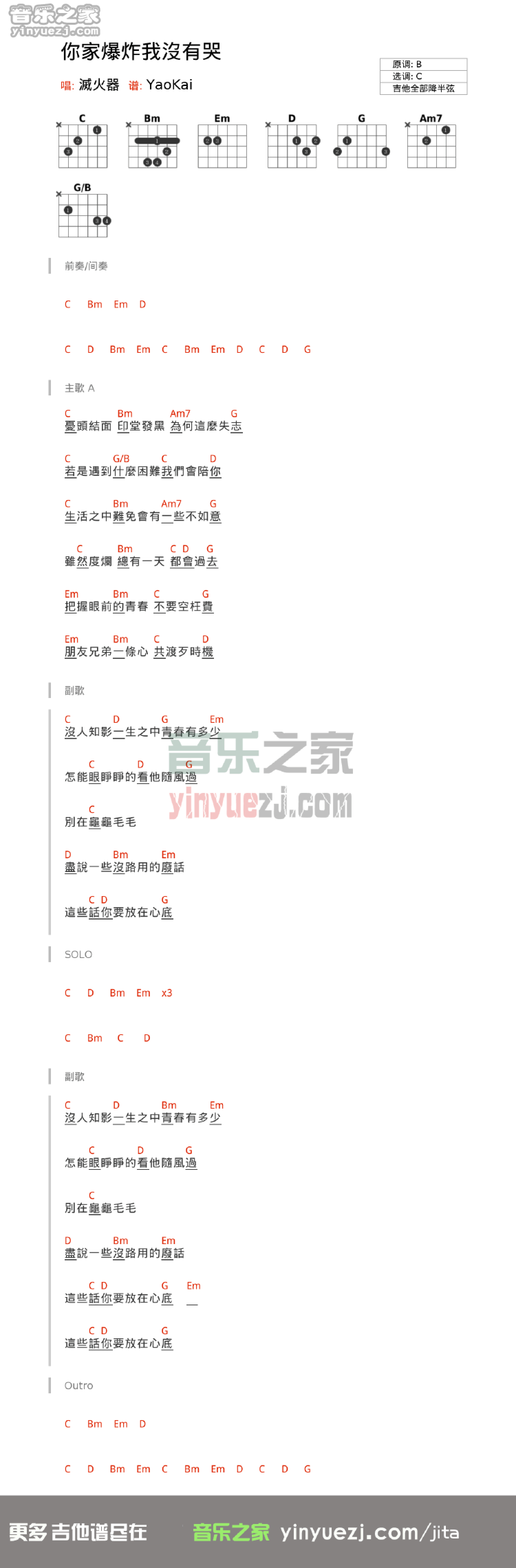 你家爆炸我没有哭吉他谱 - 灭火器 - C调吉他弹唱谱 - 和弦谱