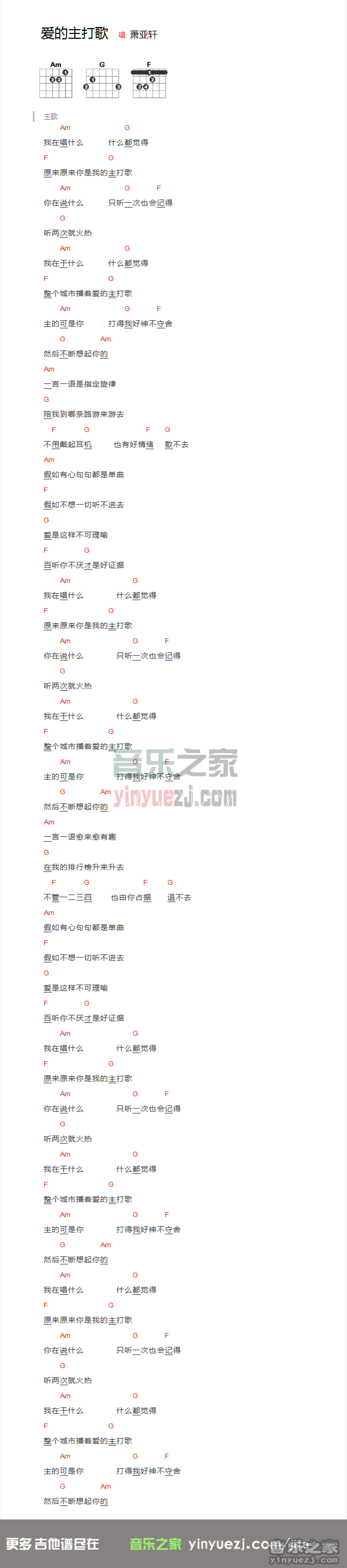 爱的主打歌吉他谱 - 萧亚轩 - 吉他弹唱谱 - 和弦谱