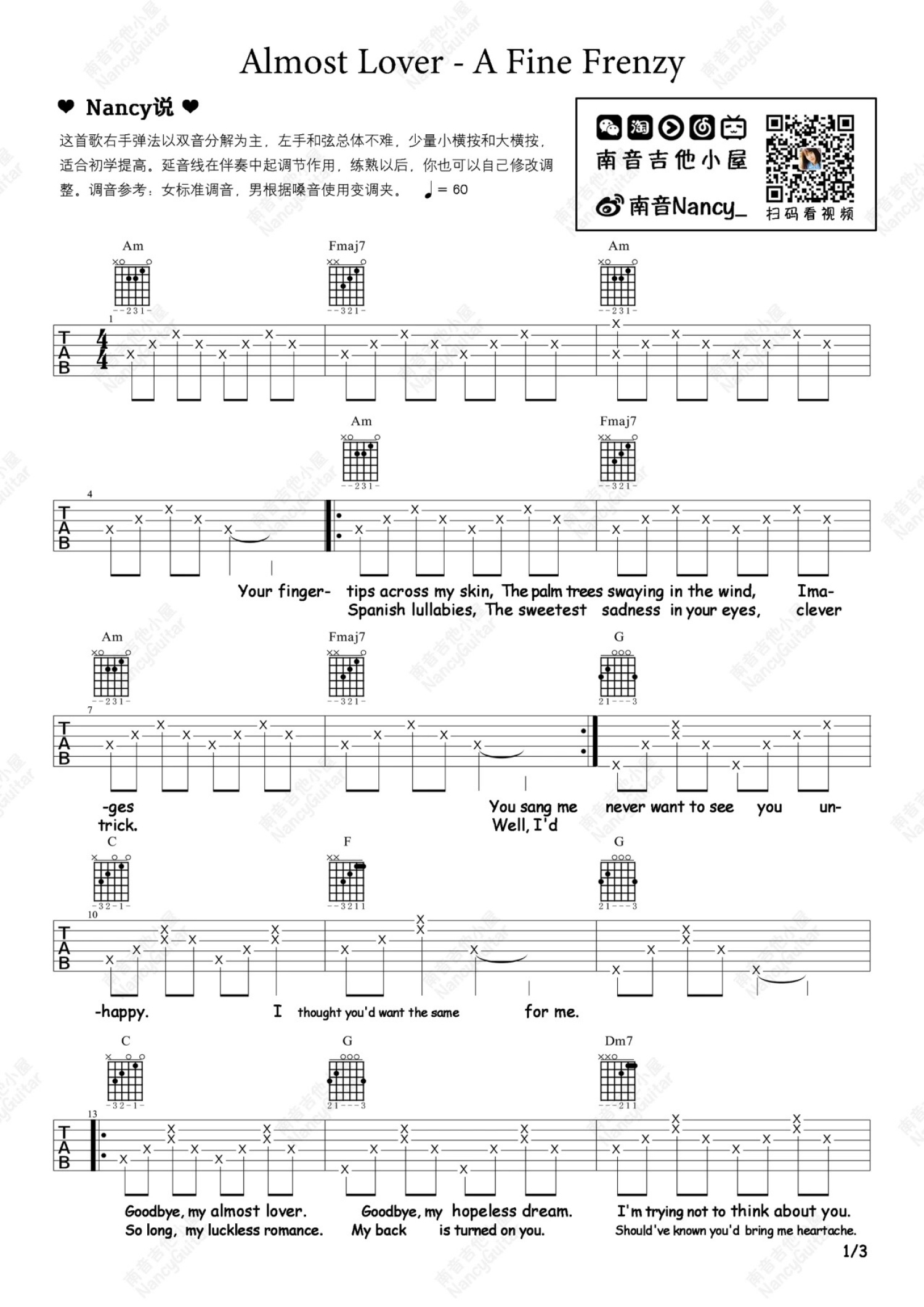 曲谱介绍: A Fine Frenzy《almost lover》吉他谱_C调吉他弹唱谱_和弦谱