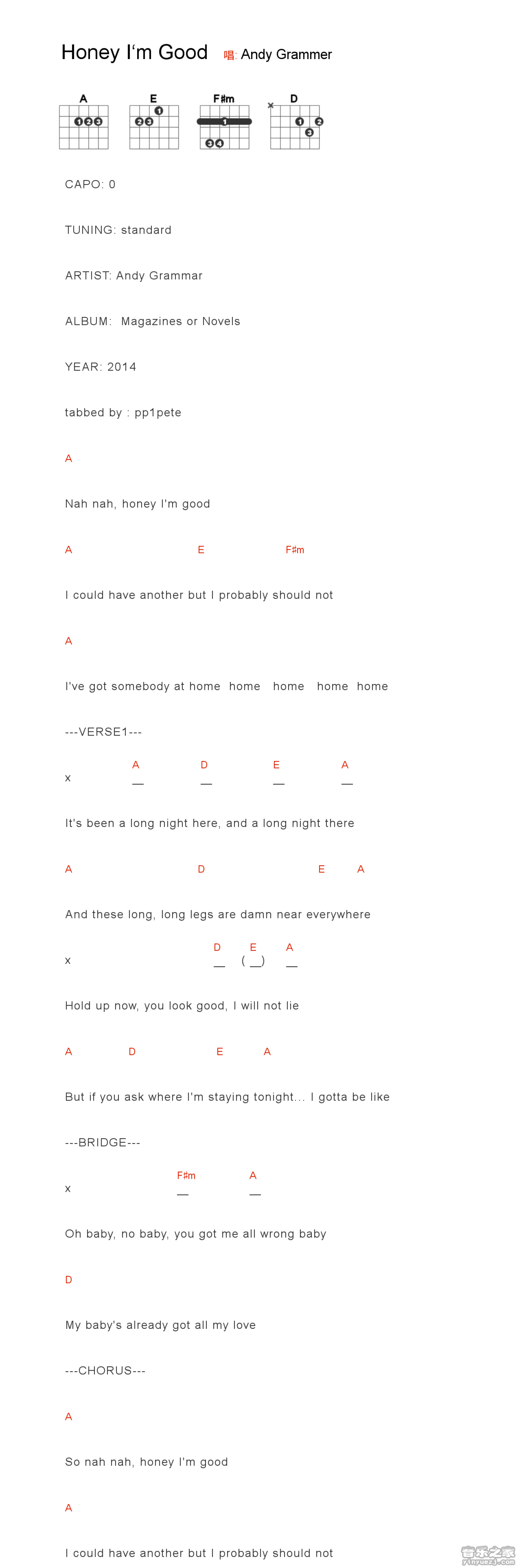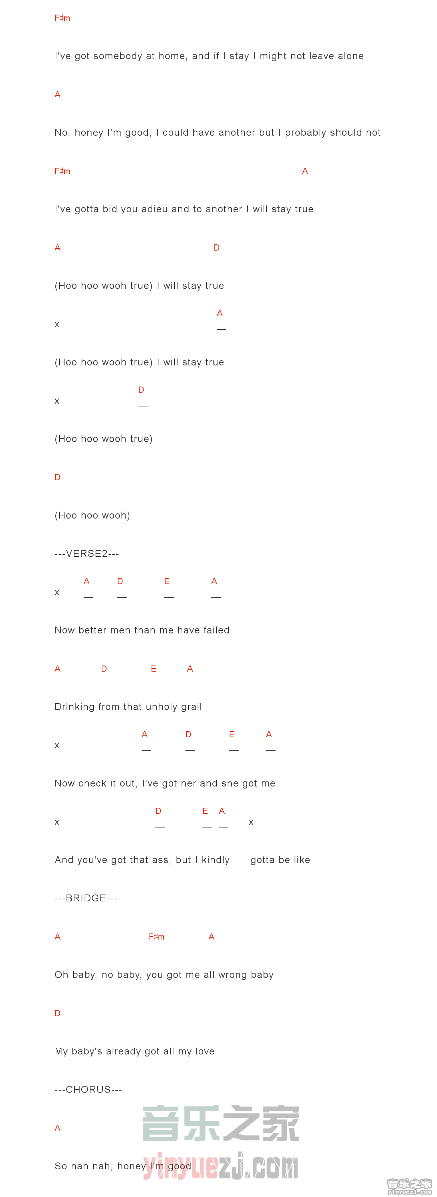 曲谱介绍: 《honeyi'mgood》吉他和弦弹唱谱