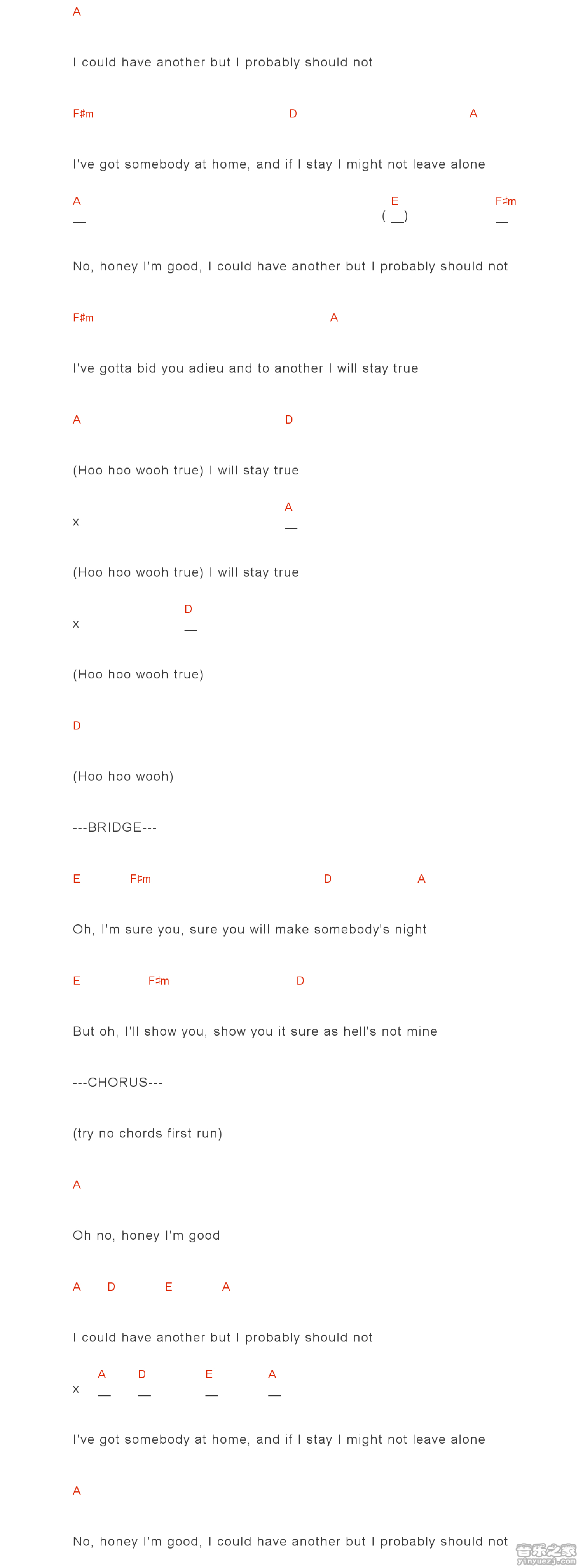 当前位置:琴谱网>吉他弹唱>honey i'm good