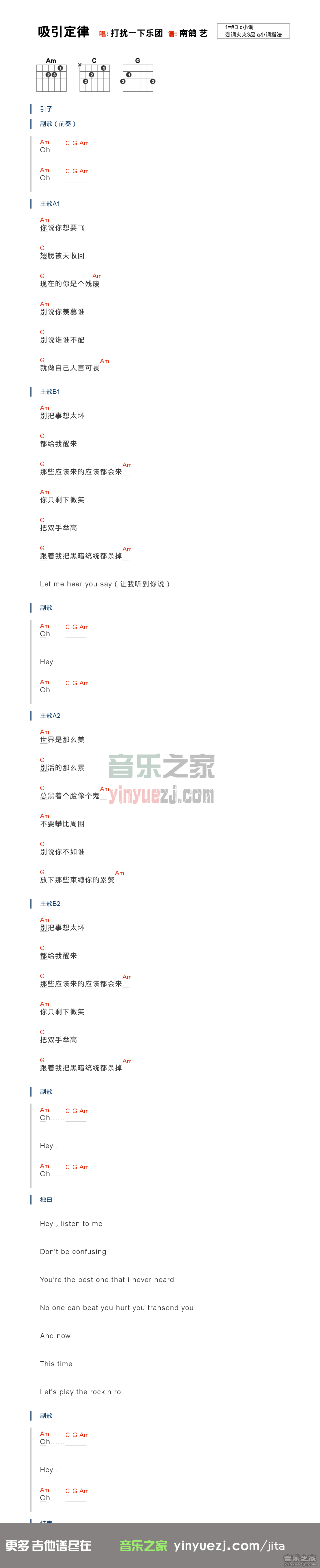 曲谱介绍: 打扰一下《吸引定律》吉他和弦弹唱谱