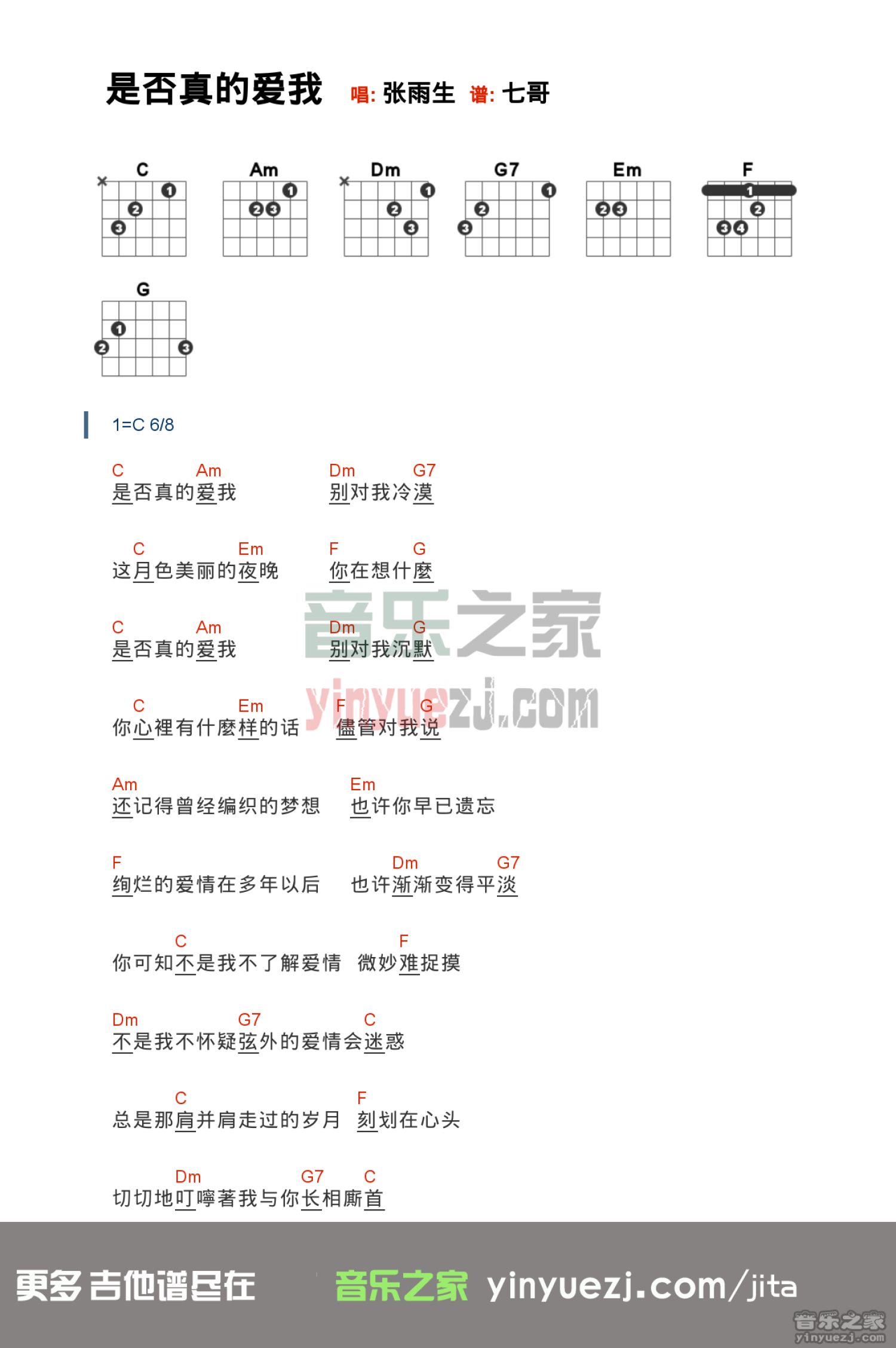 当前位置:琴谱网>吉他弹唱>是否真的爱我