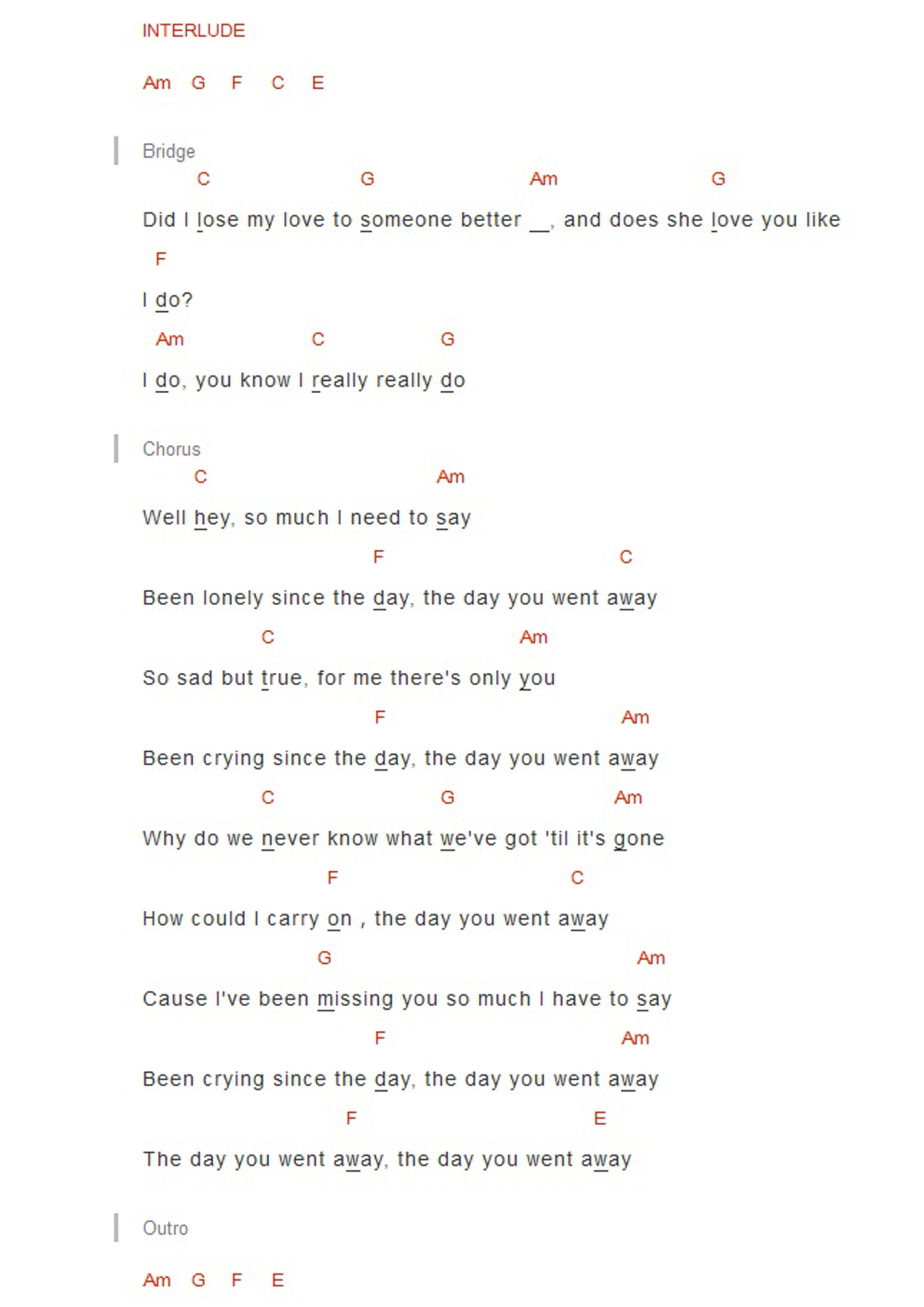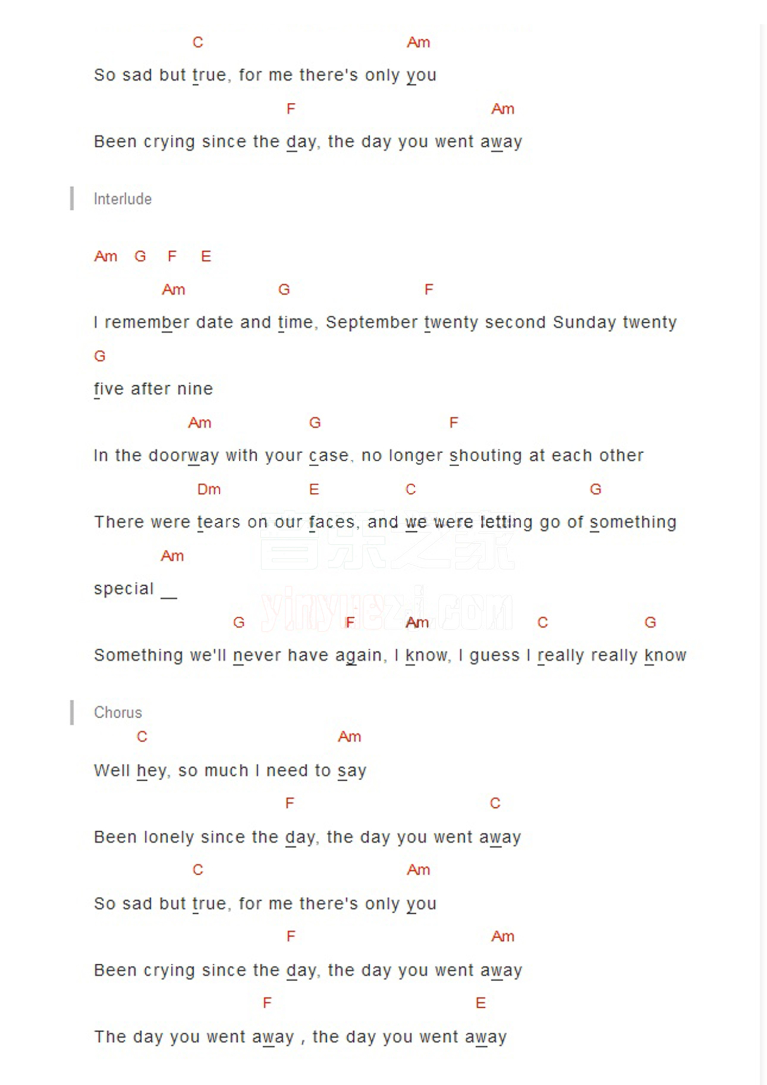 当前位置:琴谱网>吉他弹唱>the day you went away