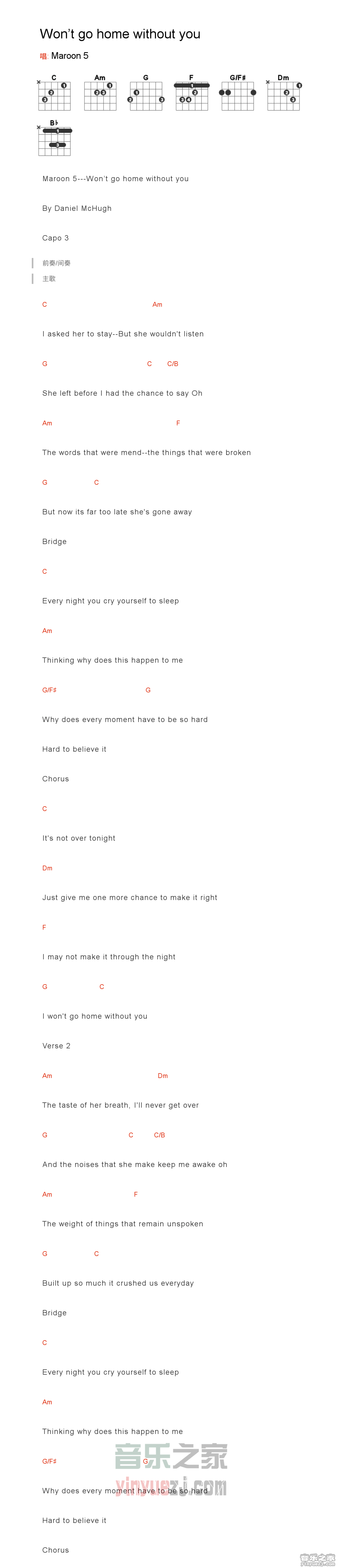 曲谱介绍: 《won'tgohomewithoutyou》吉他和弦弹唱谱