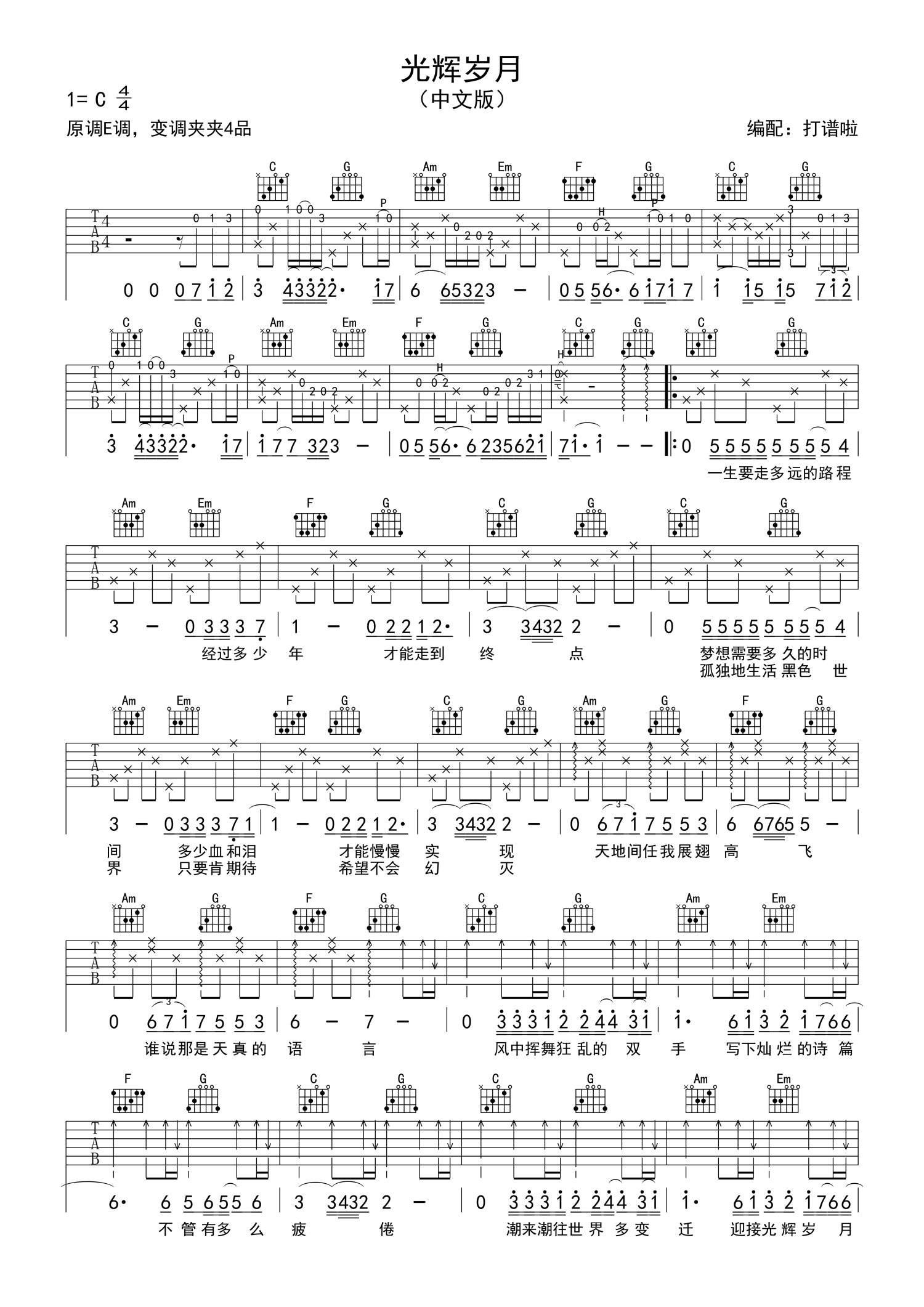 当前位置:琴谱网>吉他弹唱>光辉岁月