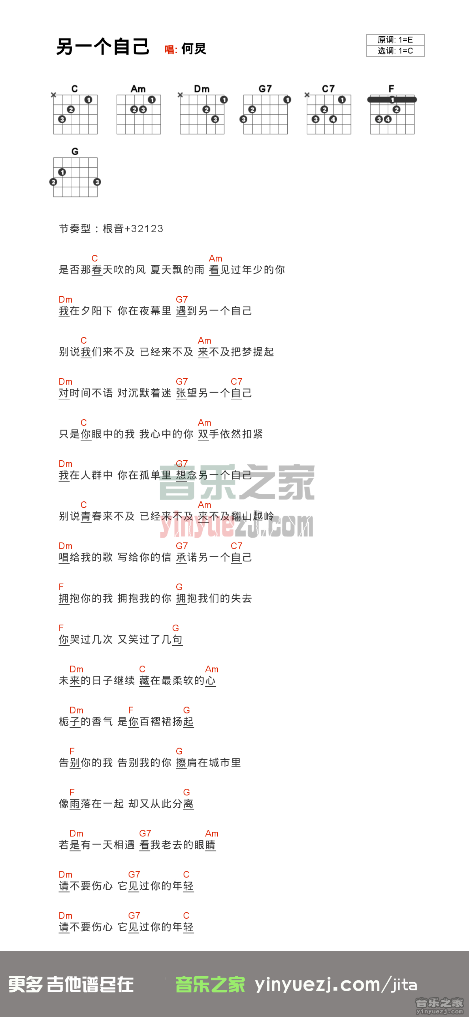另一个自己吉他谱 - 何炅 - C调吉他弹唱谱 - 和弦谱