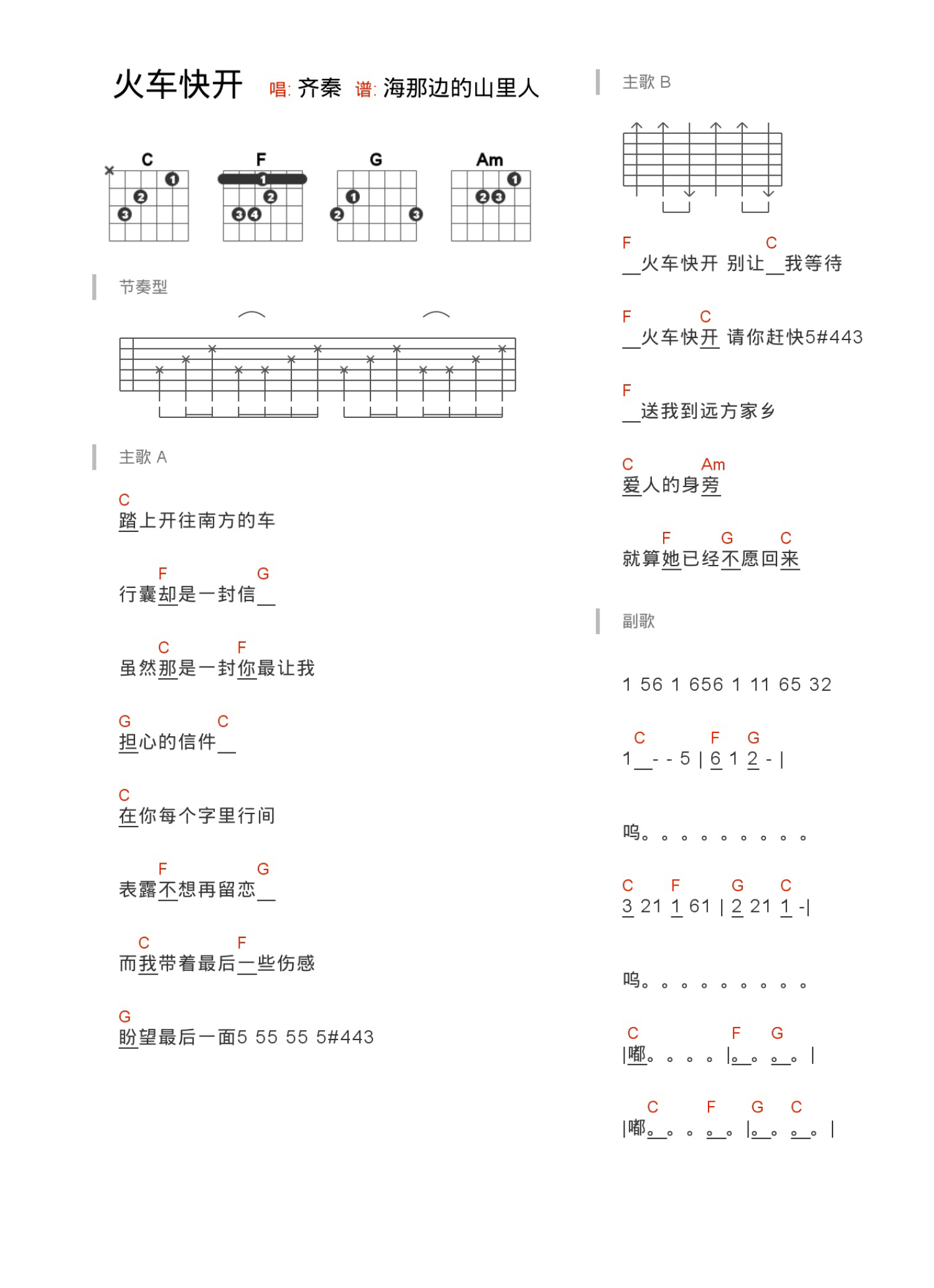 火车快开吉他谱 - 齐秦 - 吉他弹唱谱 - 和弦谱