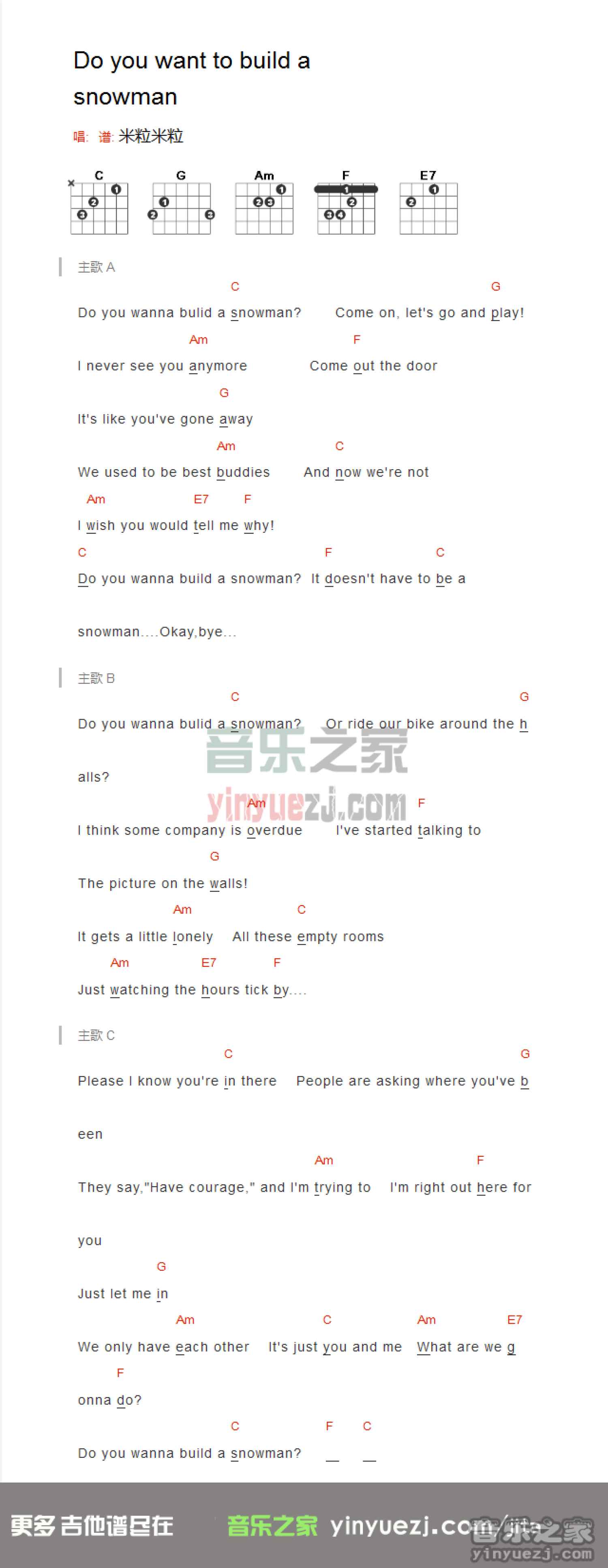 曲谱介绍: 《doyouwanttobuildasnowman》吉他和弦弹唱谱
