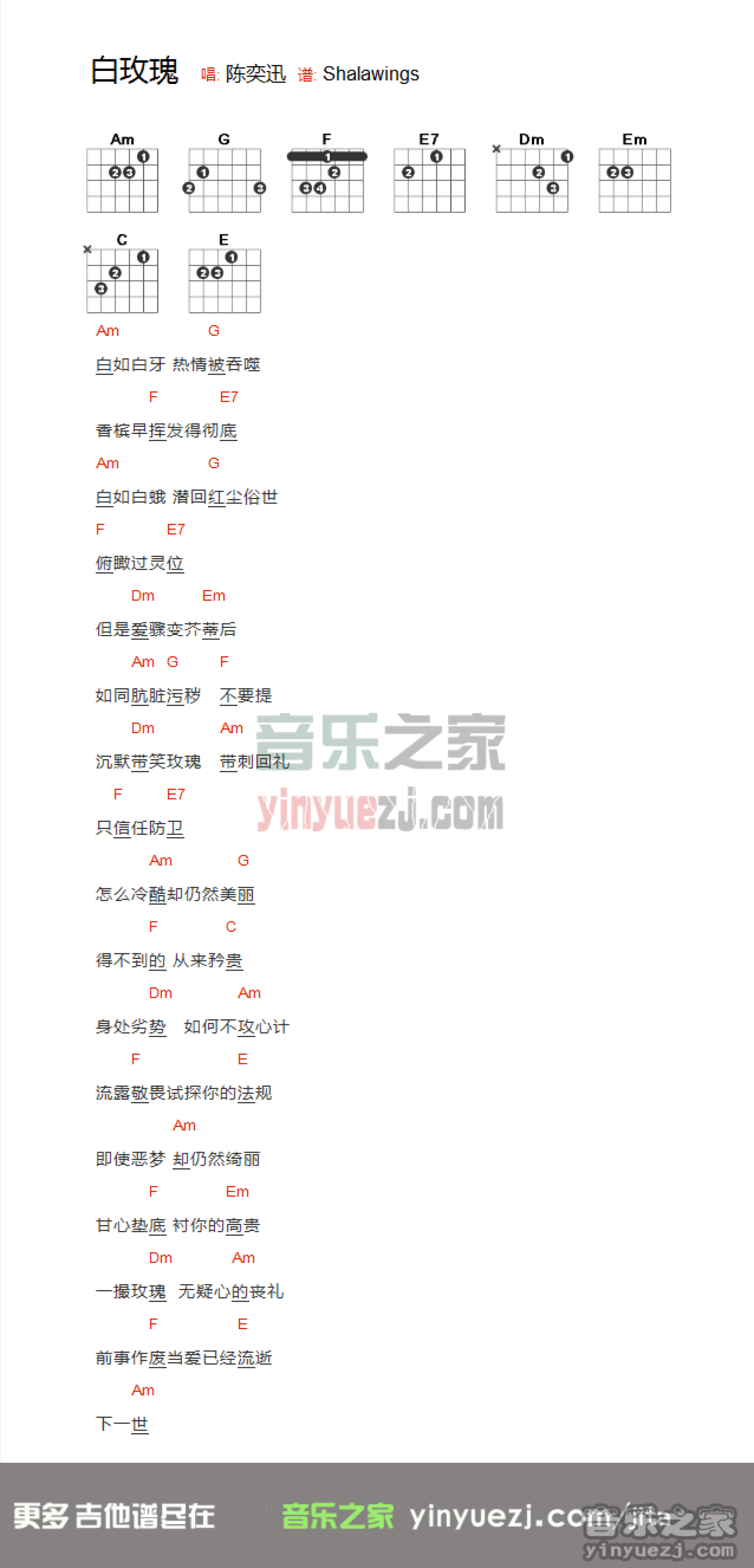 白玫瑰吉他谱 - 陈奕迅 - 吉他弹唱谱 - 和弦谱