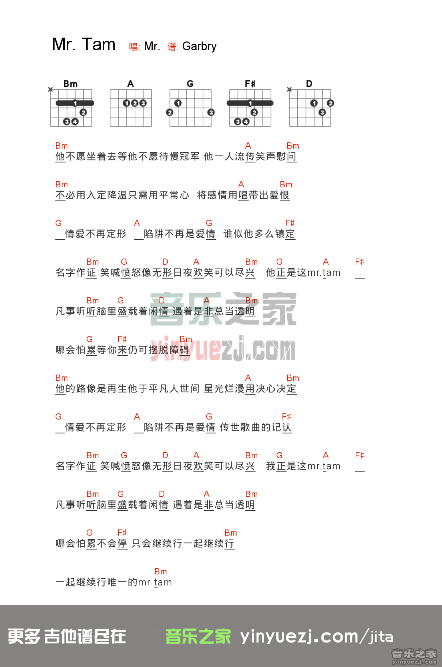曲谱介绍: Mr.《Mr.Tam》吉他和弦弹唱谱