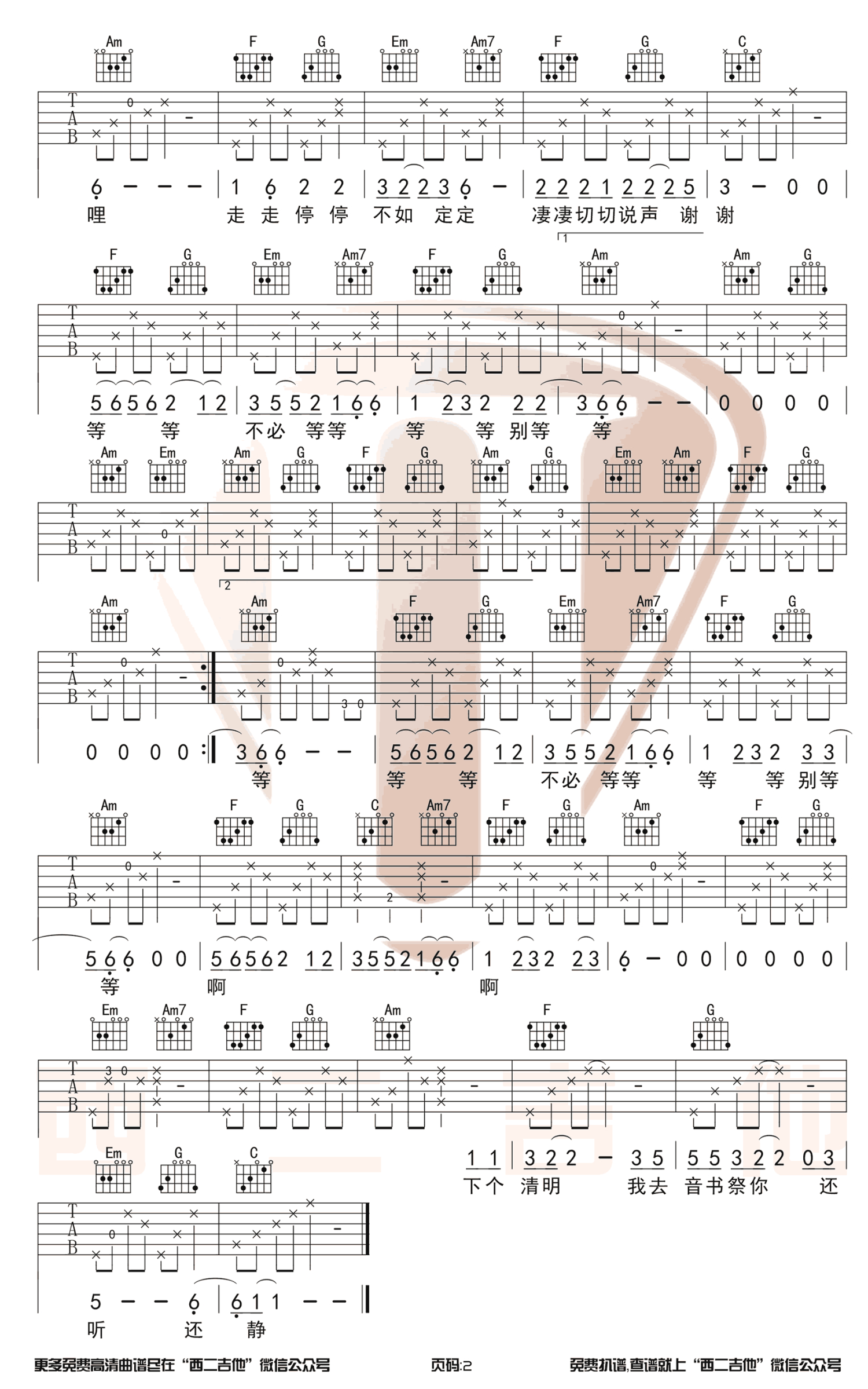吉他弹唱C调来源:西二吉他979 浏览2018-12-14 14:27发布图谱共2页