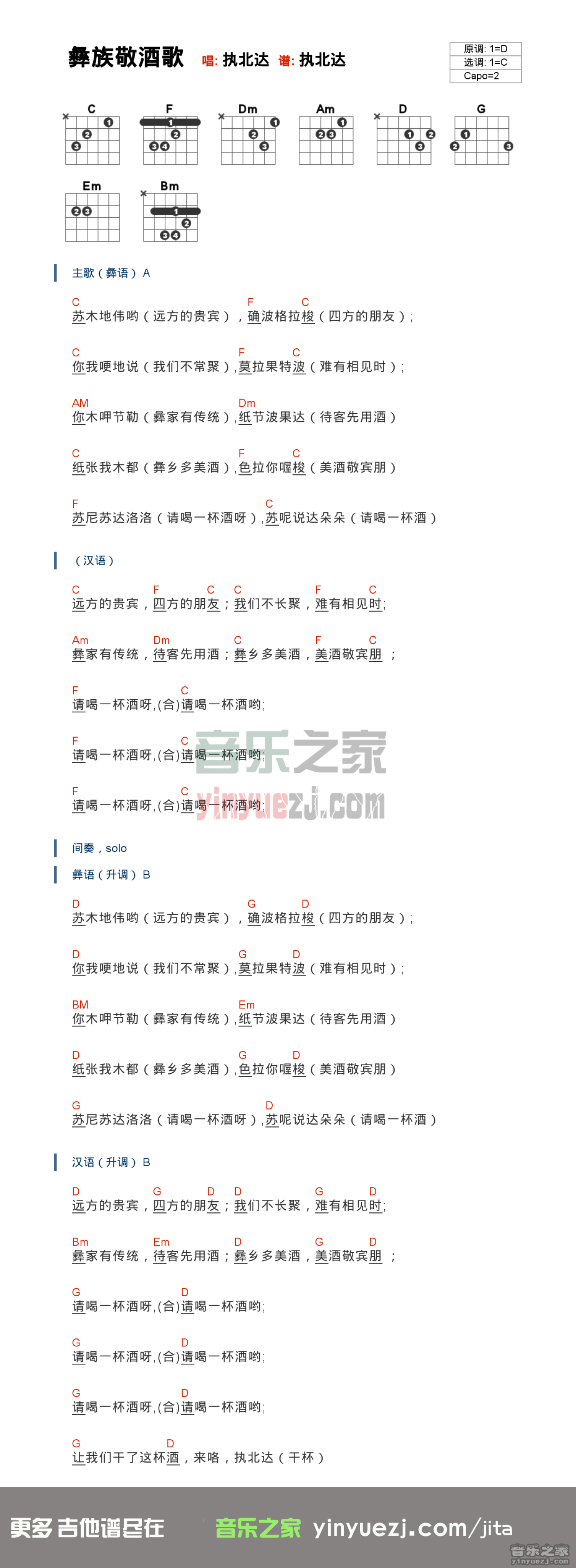 彝族敬酒歌吉他谱 - 执北达 - C调吉他弹唱谱 - 和弦谱
