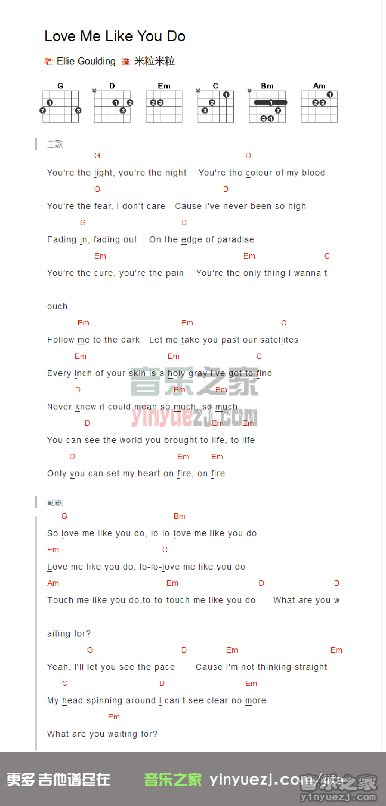当前位置:琴谱网>吉他弹唱>love me like you do