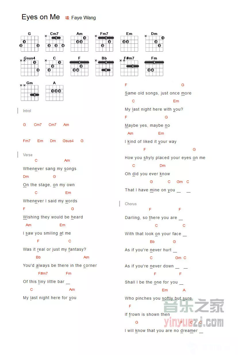 eyes on me吉他谱 - 王菲 - 吉他弹唱谱 - 和弦谱