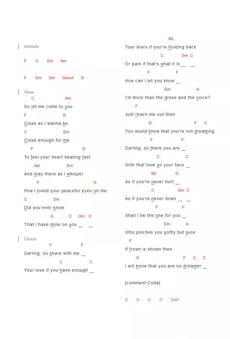 曲谱介绍: 王菲《eyesonme》吉他和弦弹唱谱
