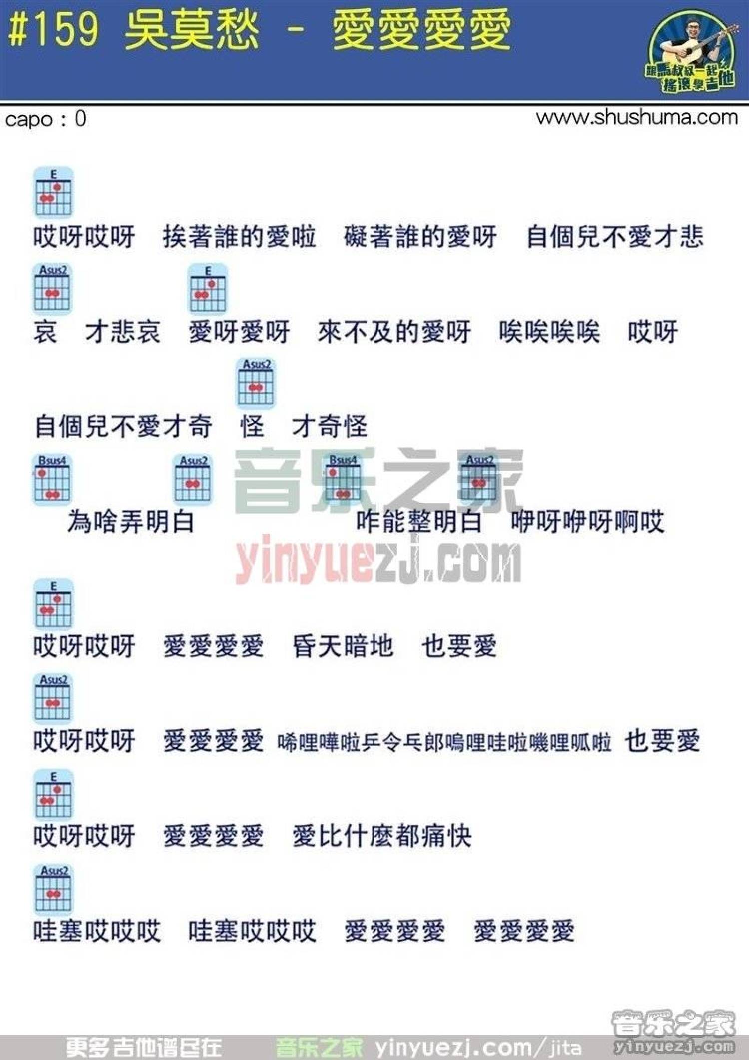 曲谱介绍: 马叔叔版吴莫愁《爱爱爱爱》吉他弹唱谱