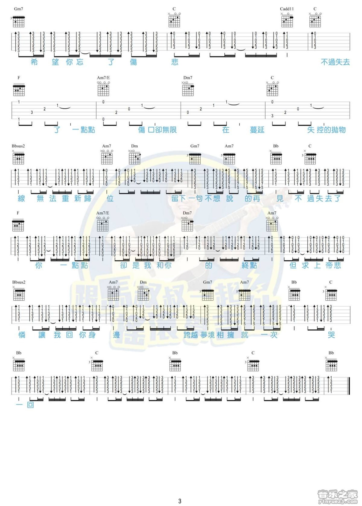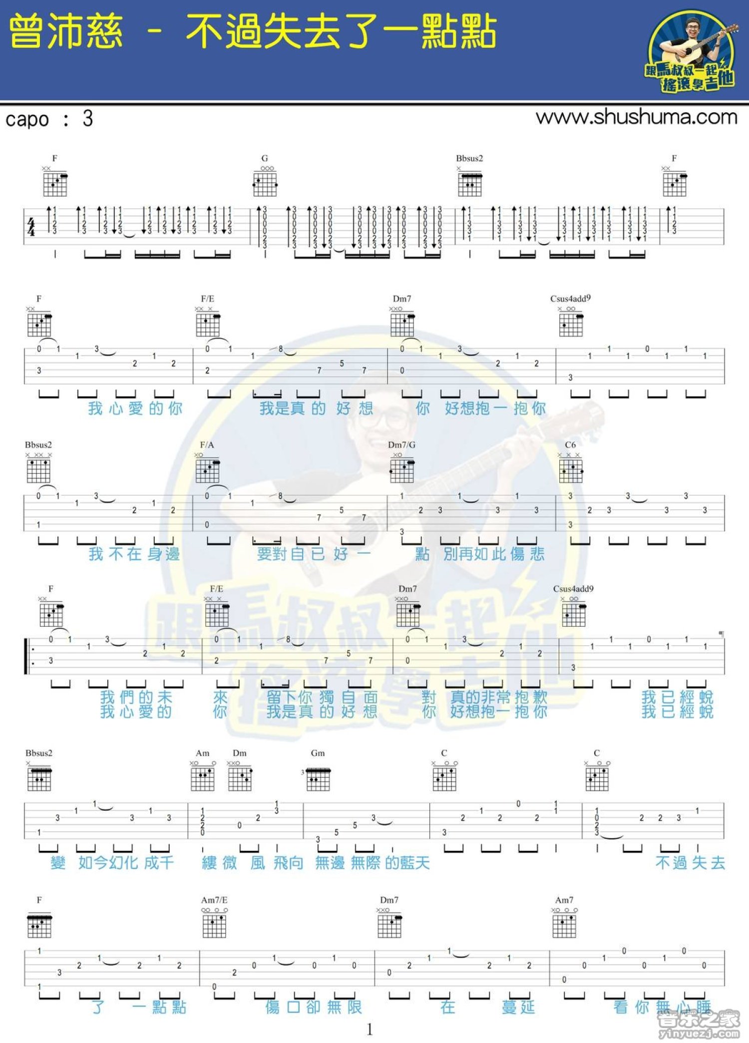 曲谱介绍: 马叔叔版曾沛慈《不过失去了一点点》吉他弹唱六线谱