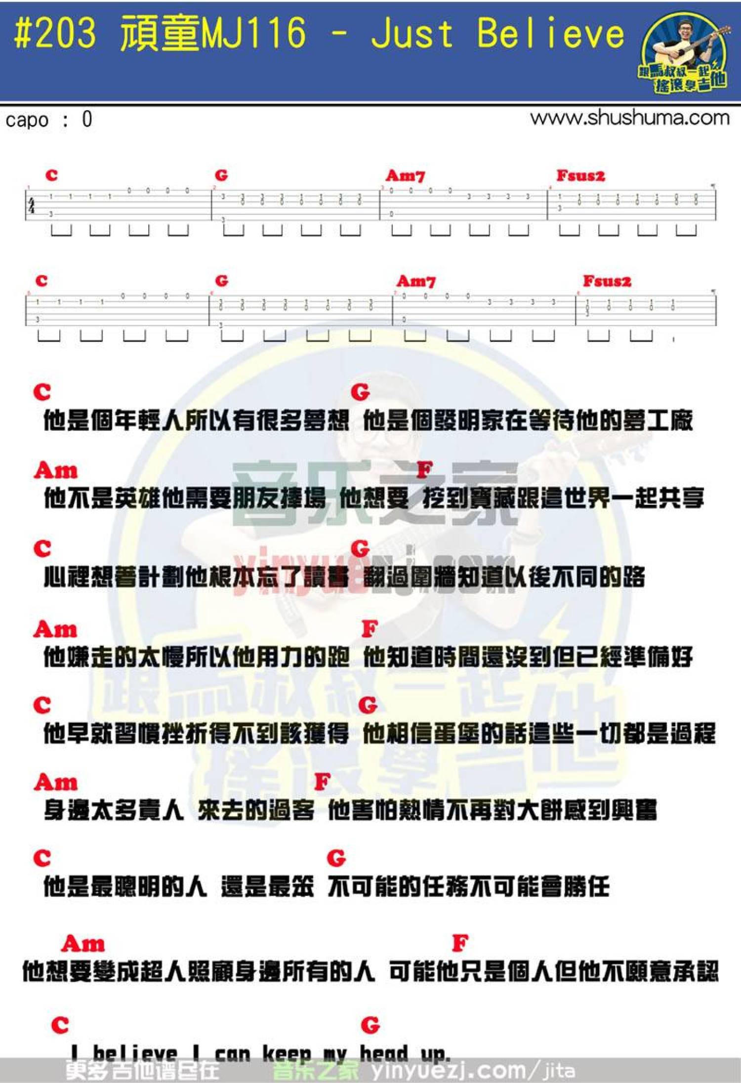 曲谱介绍: 马叔叔版顽童mj116《justbelieve》吉他弹唱谱