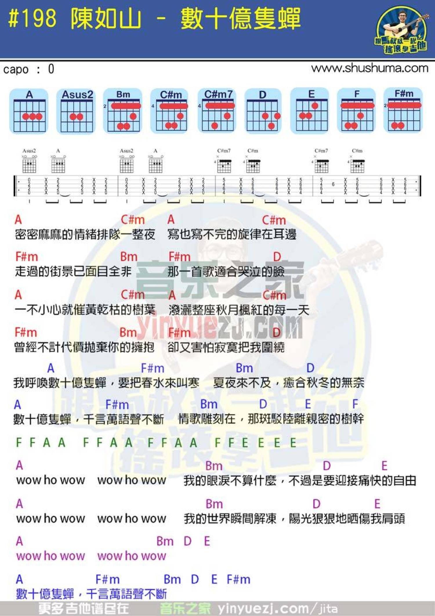 曲谱介绍: 马叔叔版陈如山《数十亿只蝉》吉他弹唱谱