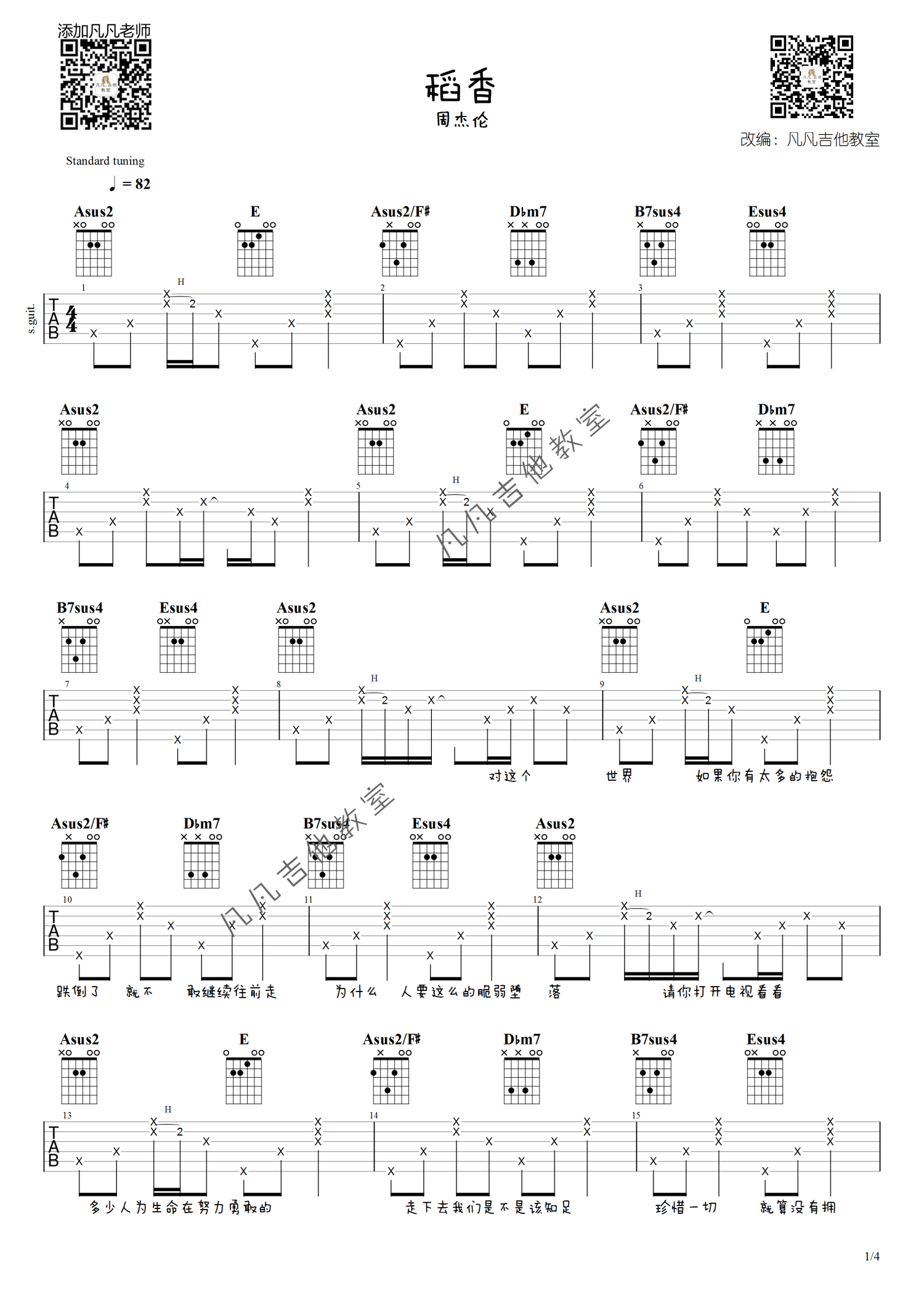 曲谱介绍: 周杰伦《稻香》吉他谱_A调吉他弹唱谱_原版