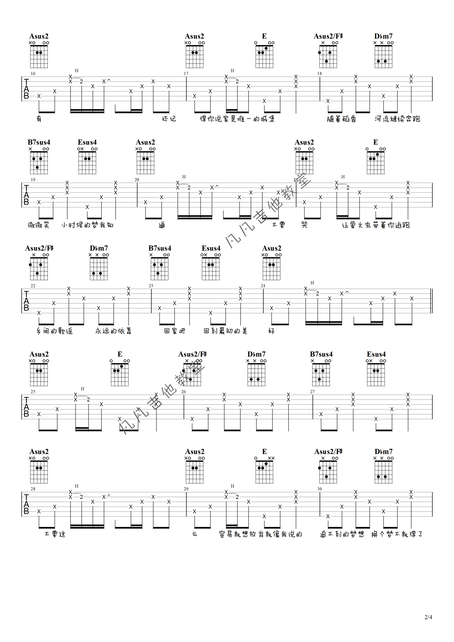 吉他弹唱A调来源:凡凡吉他教室7223 浏览2021-01-08 13:13发布图谱共4页