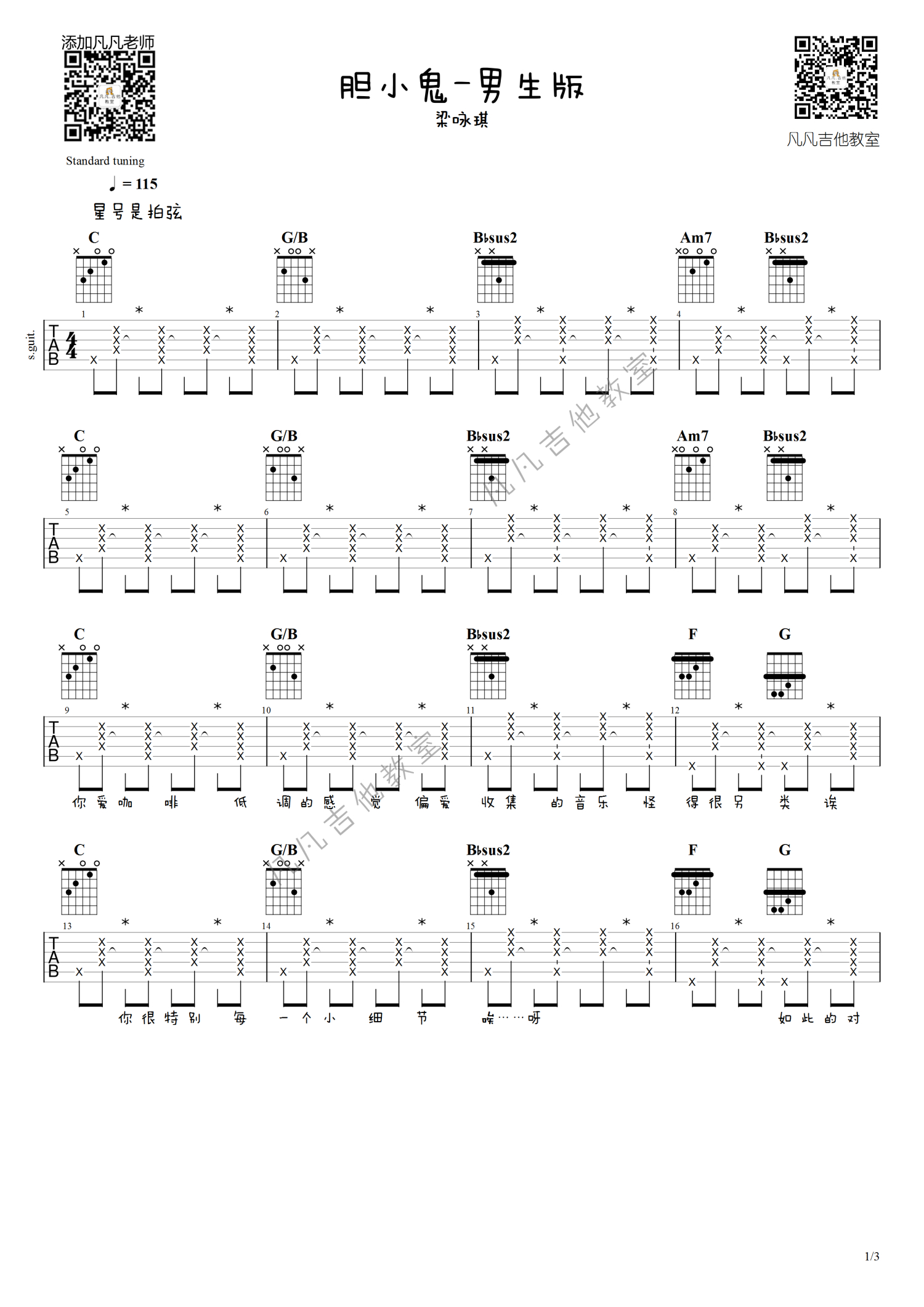 曲谱介绍: 梁咏琪《胆小鬼》吉他谱_C调吉他弹唱谱_男生版-简单
