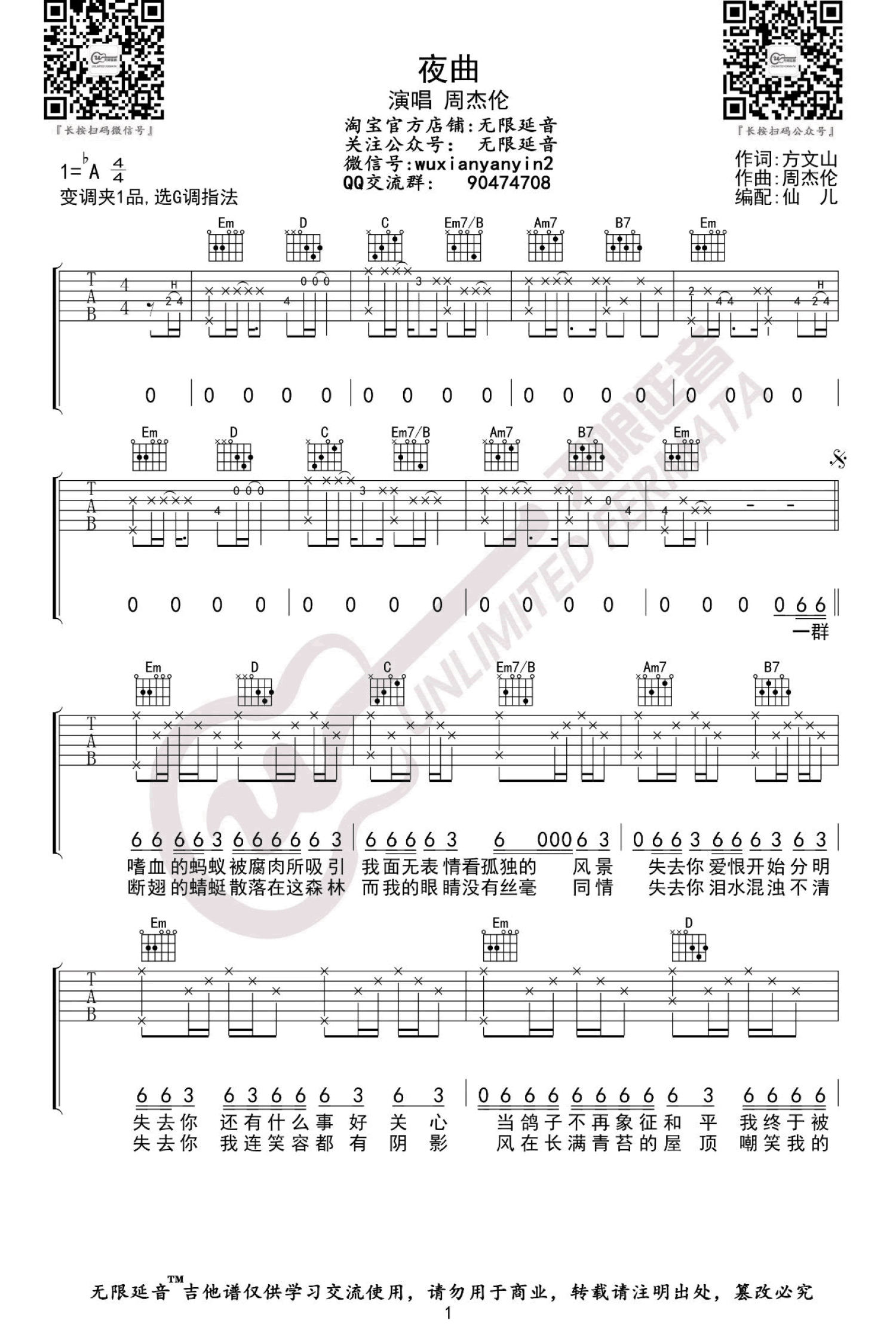 曲谱介绍: 周杰伦《夜曲》吉他谱_G调吉他弹唱谱