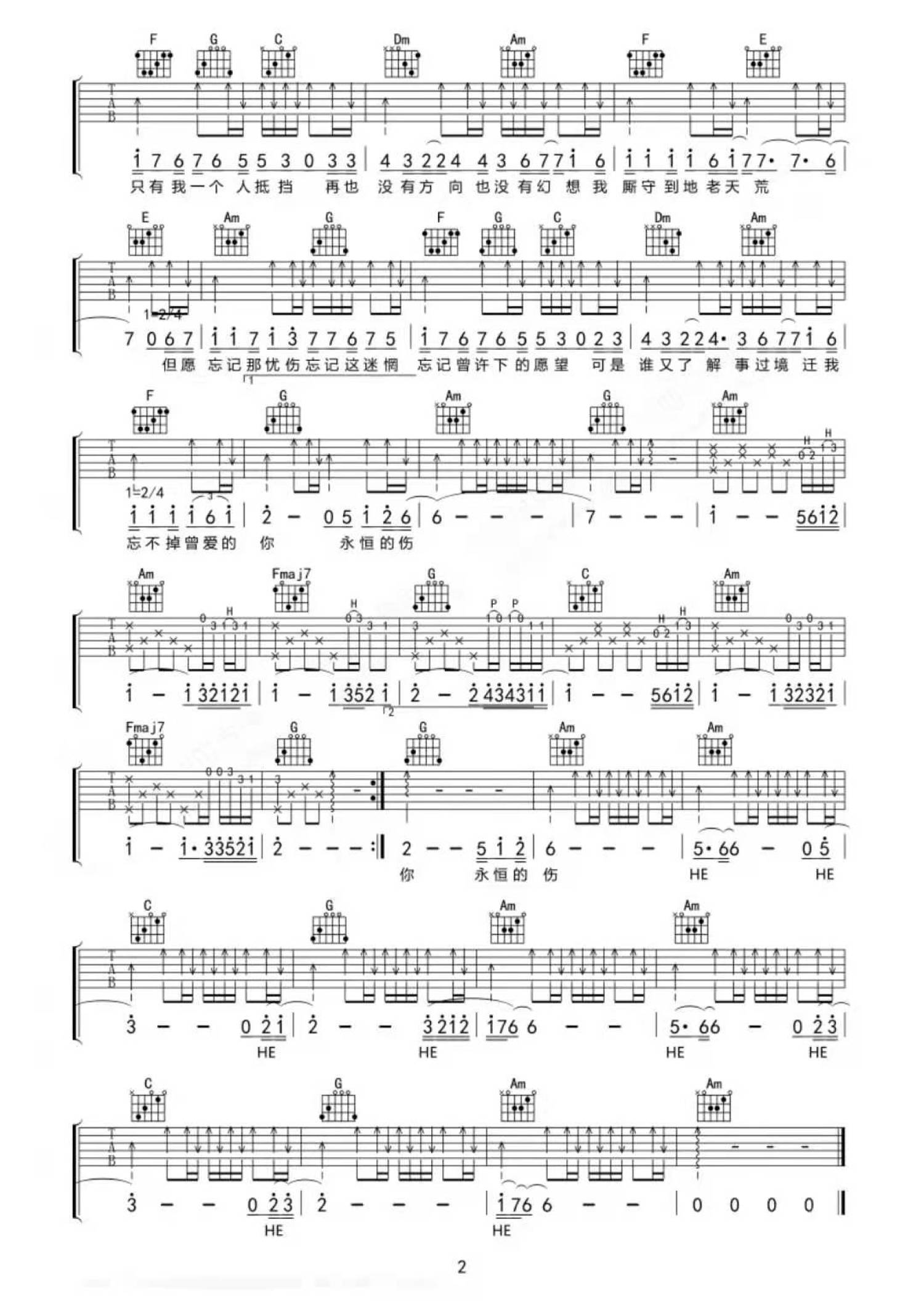 当前位置:琴谱网>吉他弹唱>忘不掉的伤