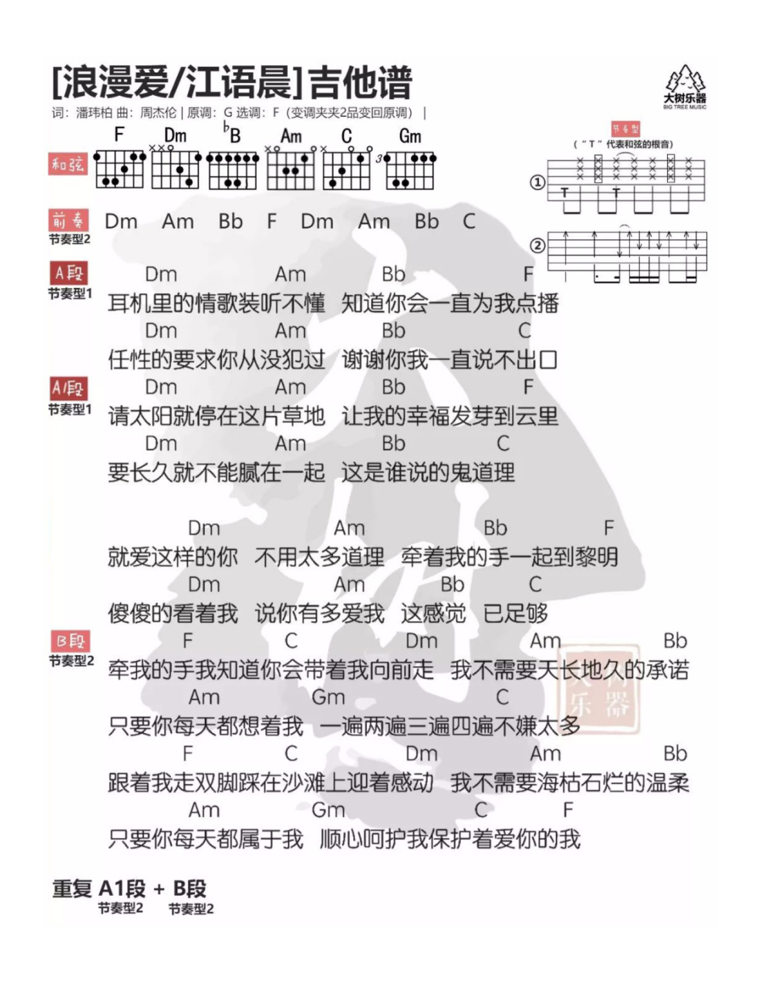 吉他弹唱F调来源:大树乐器7145 浏览2021-01-08 13:49发布图谱共1页