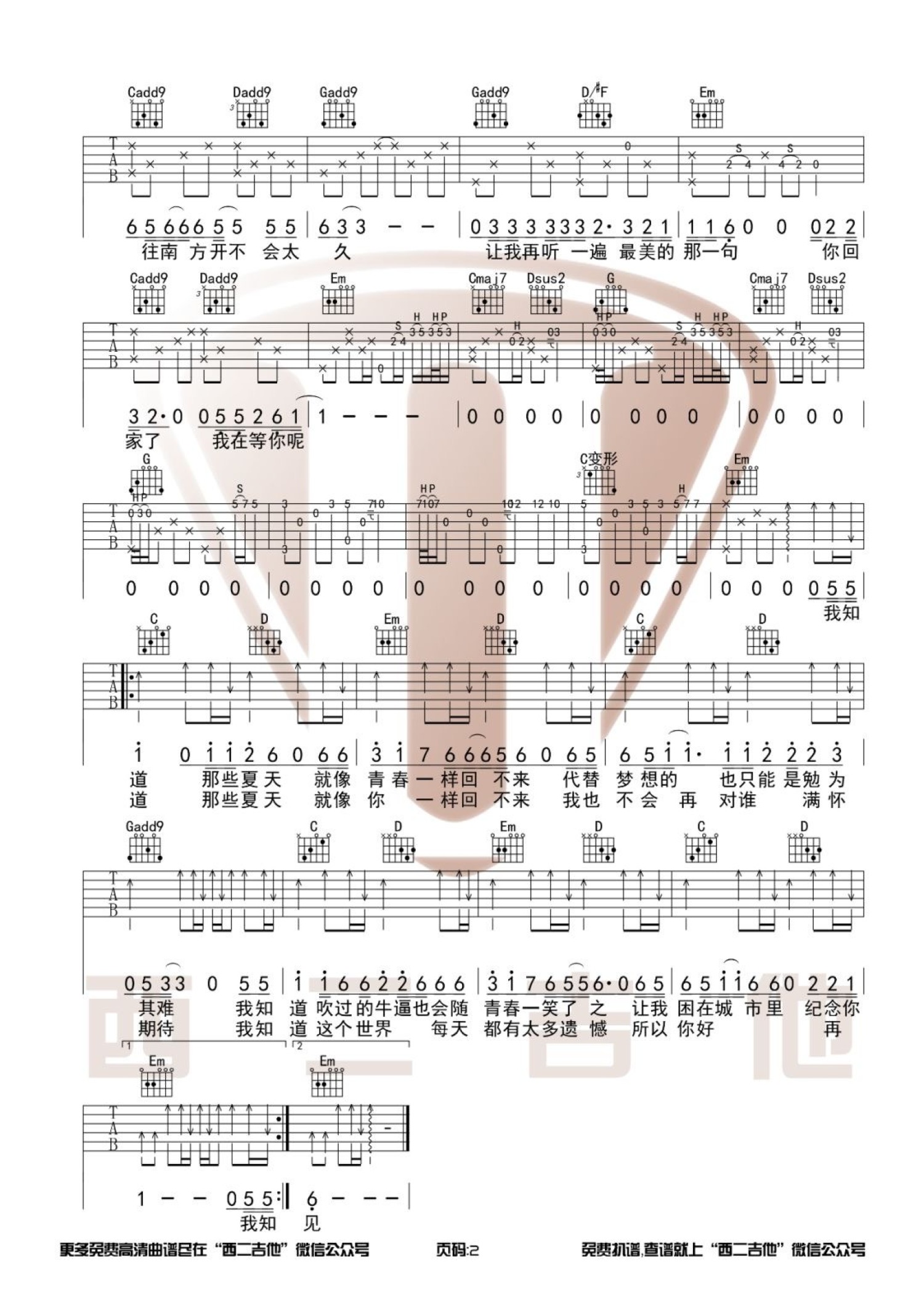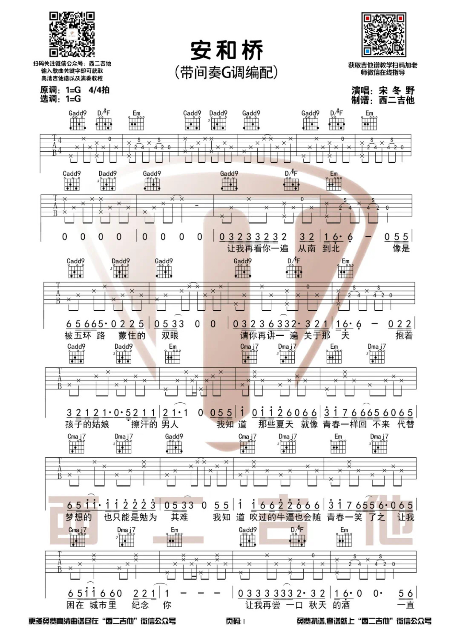 曲谱介绍: 宋冬野《安河桥》吉他谱_G调吉他弹唱谱