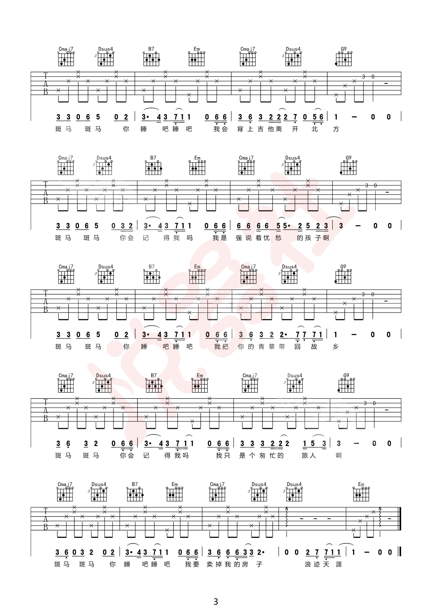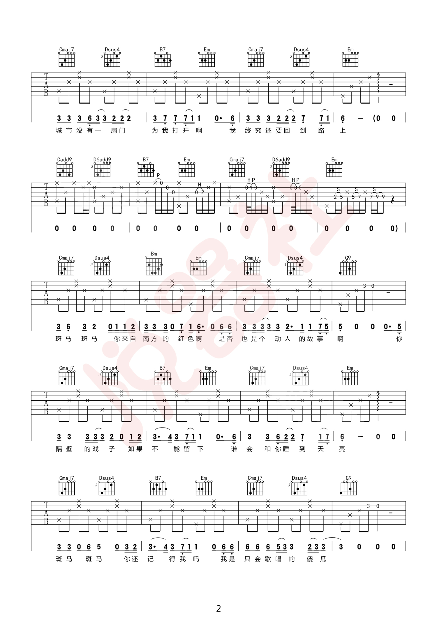 当前位置:琴谱网>吉他弹唱>斑马斑马