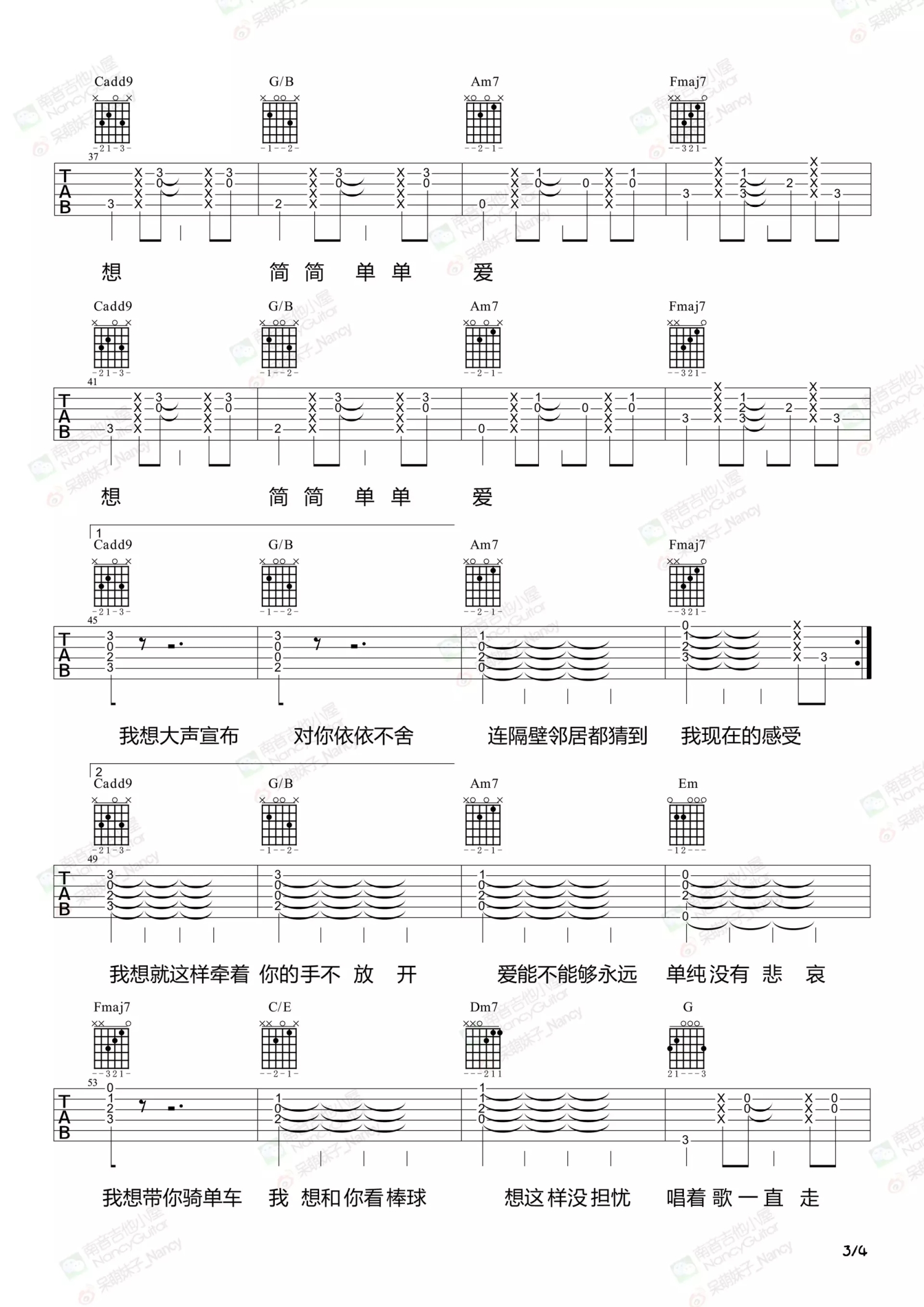 当前位置:琴谱网>吉他弹唱>简单爱