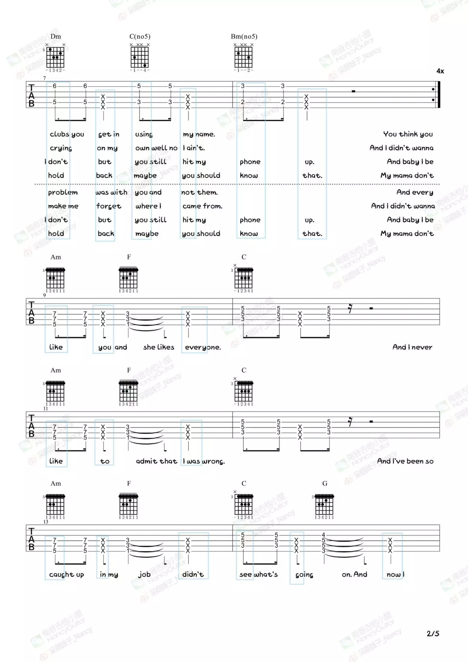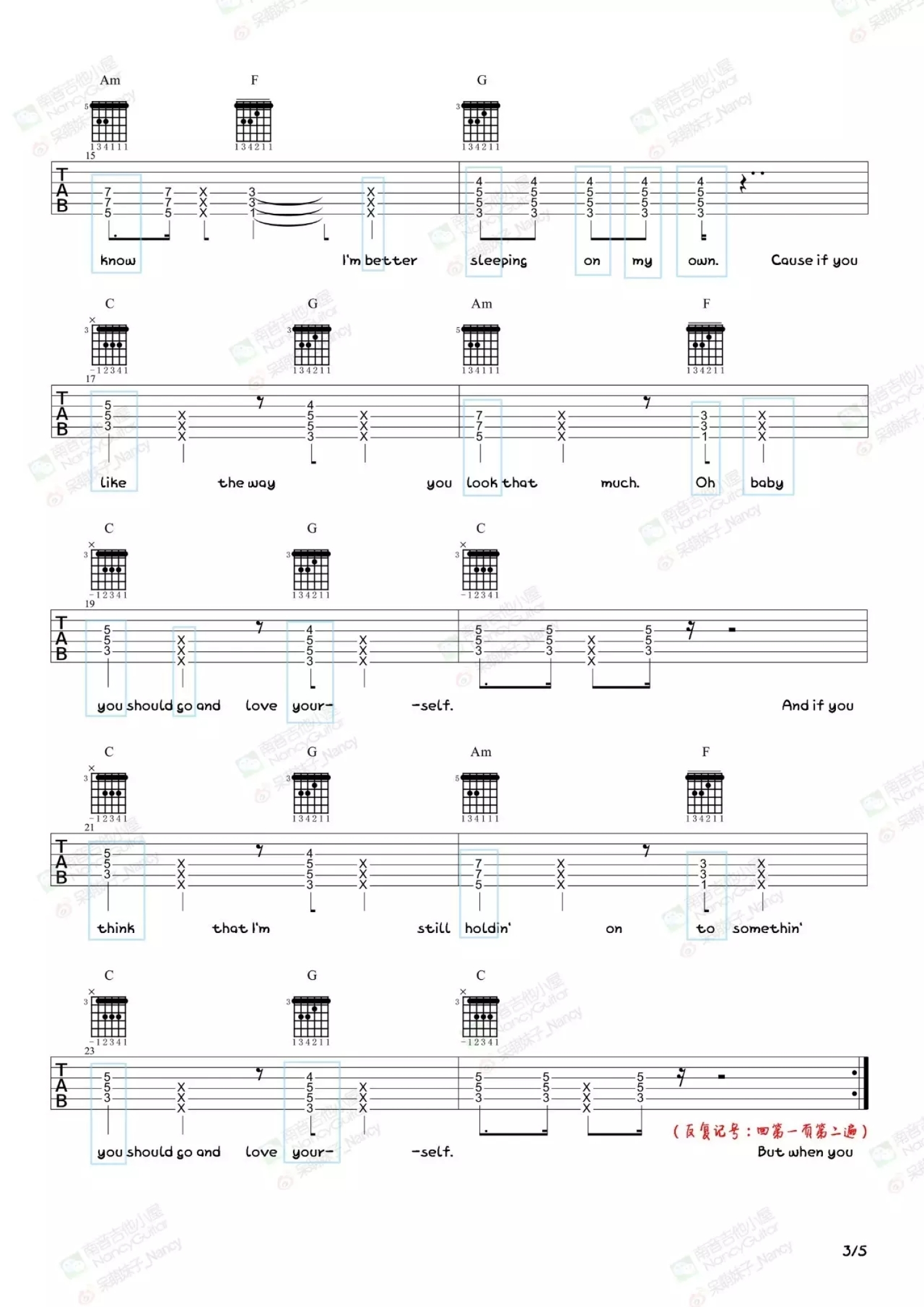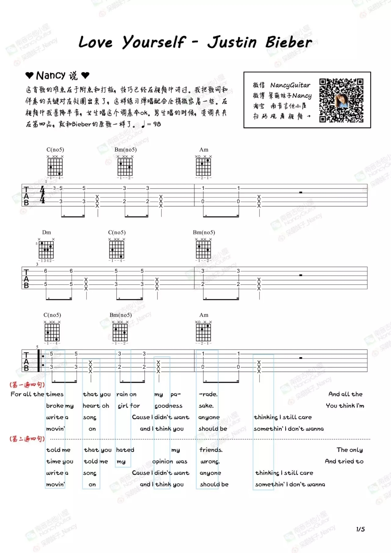 曲谱介绍: Justin Bieber《Love yourself》吉他谱_吉他弹唱谱