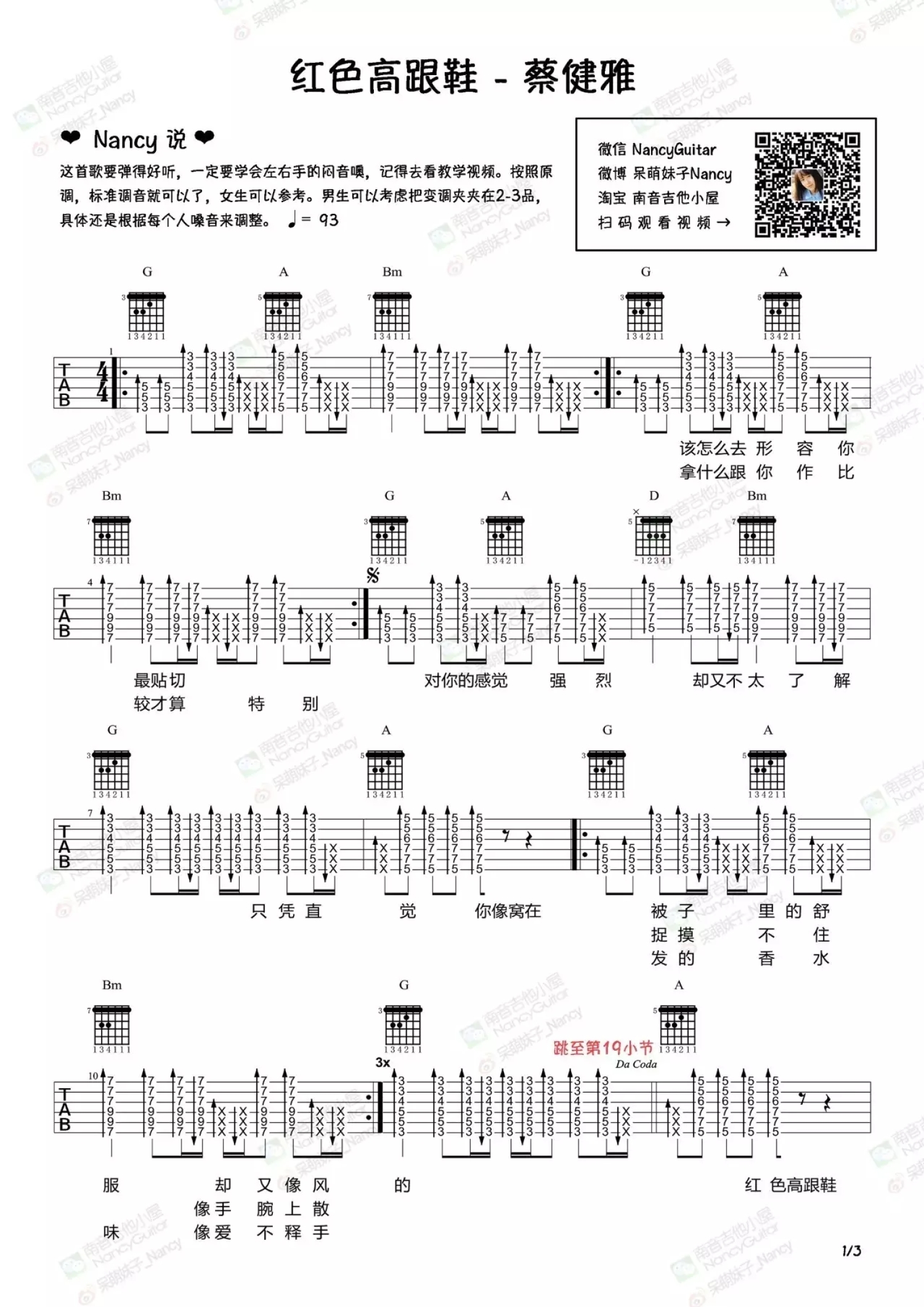 曲谱介绍: 蔡健雅《红色高跟鞋》吉他谱_吉他弹唱谱